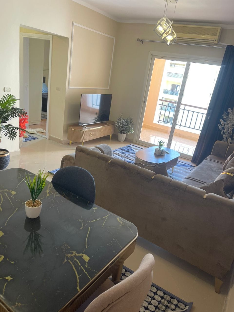 Enjoy the resort luxury living where lush greenery walks has no end while creating a memorable relaxation and enjoyable moments in the 3 high end pools including all ages and adults only pools, along with being close to all the city attractions points where famous shopping malls, it’s 25 minutes away from the Grand Egyptian Museum by Ubers! Our apartment is located in the heart of one of the most well known luxurious residential compounds where you can roam or have a lovely walk anytime safely!