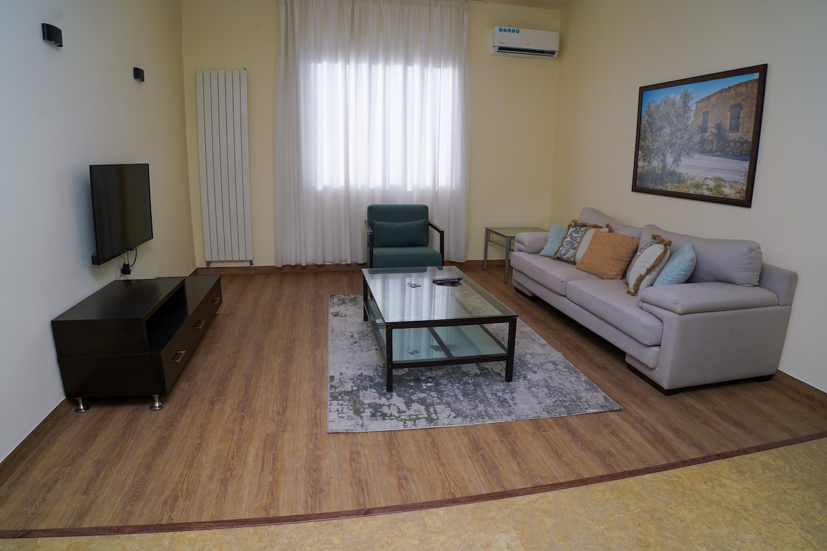A place with 1 bedroom(2 single beds or 1 king) 1 living room Private 24/7 electricity 24/7 Ac 24/7 hot water 24/7 internet Ac in each room TV in each room Netflix washing machine kitchen accessories