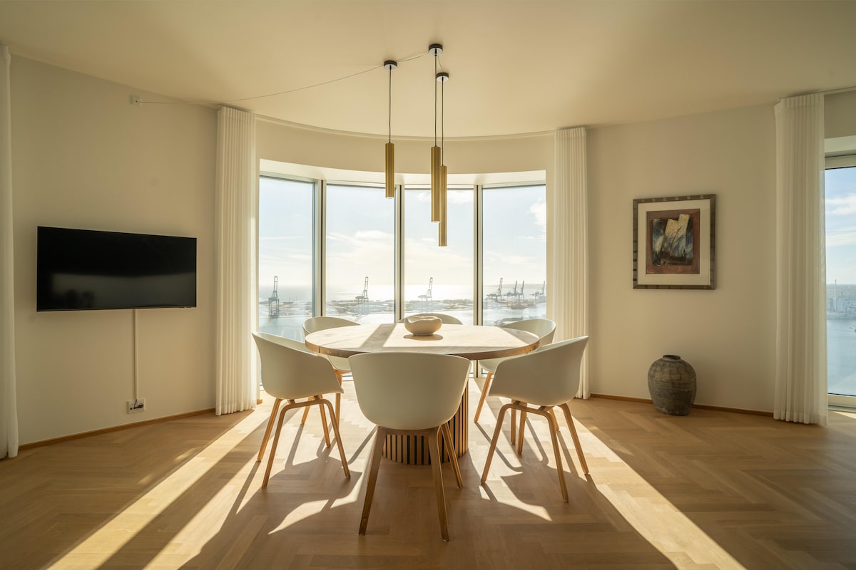 *Indawo yokupaka ephrayivethi ku -1 ifakiwe* Ungathanda yini ukuchitha ubusuku esakhiweni eside kunazo zonke e-Denmark, ujabulele ingilazi yewayini elibandayo kuvulande ovulekile esitezi sama-26, kuyilapho imikhumbi emincane ihamba ngezikebhe ezinkulu ngaphansi kwelanga? Khona-ke usuthole indawo efanele yohambo oluhle kakhulu. Ifulethi linakekelwa ngokugcwele futhi lihlanzwa ngezinga eliphakeme kakhulu futhi isevisi ihlezi itholakala ngokuxhumana kwethu okuzinikele. Okwenziwayo okuyinhloko kuhlanganisa ukubhukuda olwandle, i-sauna, njll.
