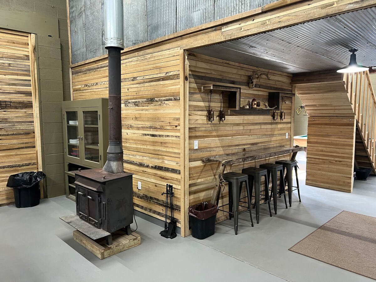 Indlu Eyakhiwe Ngamapulangwe Eduze Ne-Shawnee | Ubhavu Wamanzi Ashisayo + Indawo Yomlilo