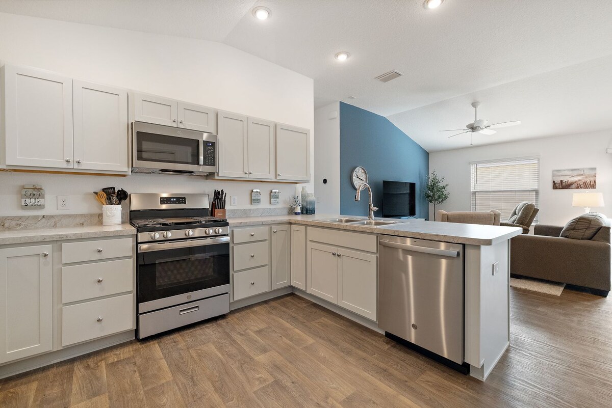 Zijabulise endaweni yokuvakasha enesitayela kuleli khaya eliphakathi nendawo, imizuzu embalwa ukusuka e-Brownwood Square ephawulekayo e-Village yase-DeLuna efunwayo. Ngena ujule ekuzithokoziseni okugcwele kwe-Villages ngendawo yokubhukuda yomphakathi, isikhungo sokuzilibazisa, futhi ufake inqola yegalofu-ilungele ukuhlola. Jabulela ukuthenga okuseduze, ukudla, umculo obukhoma, impilo yasebusuku, ezemidlalo, nokunye. Hlola i-Central Florida noma uthathe uhambo olufushane oluya e-Gulf Coast, e-Atlantic Ocean, e-Disney, noma e-Orlando-konke kungakapheli ihora!