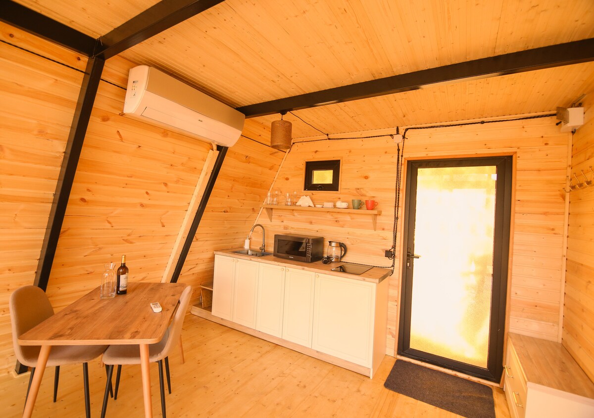 Siyakwamukela endlini yethu eyakhiwe ngamapulangwe i-Greenland Pheria, lapho umoya wasemaphandleni uhlangabezana khona nokunethezeka enkabeni yemvelo. Le ndlu eyakhiwe ngamapulangwe ekhanyayo nenesitayela inikeza izindawo ezinhle zasolwandle nezintaba kuvulande wakho wangasese namafasitela e-bay, eqhele ngetshe ukusuka edolobheni lase-Batumi. Jabulela ukunakekelwa kwe-air conditioning ne-Home Theater Projector phakathi kwamanye amasevisi anamuhla.