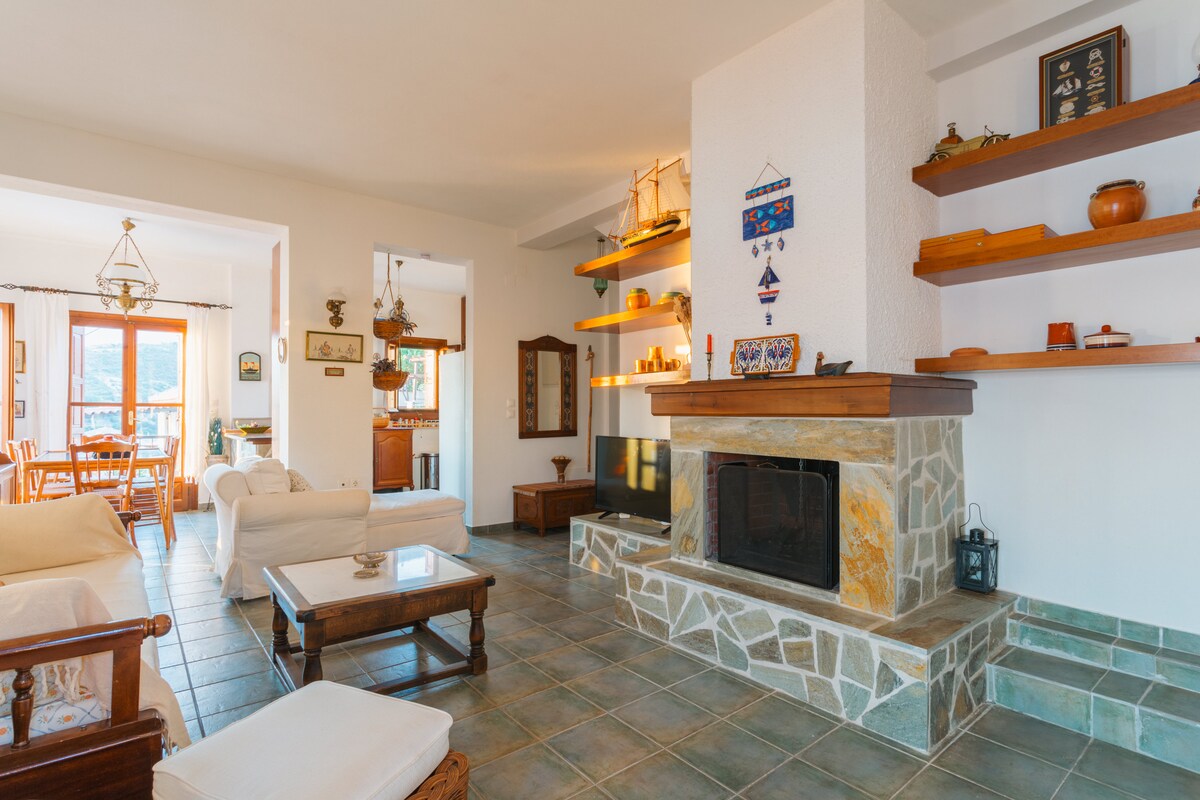 * Omatilasi abasha 2025! * Indlu yamatshe endala elungisiwe enamazinga amabili endaweni enombono omangalisayo wolwandle lwe-aegean elisengxenyeni ephakeme kakhulu yedolobhana lendabuko i-Zagora. Ukukhetha okuhle kwemindeni, iqembu labangane noma imibhangqwana efuna ukuthula nokunethezeka kweholide labo; kungaba ihlobo noma ebusika.