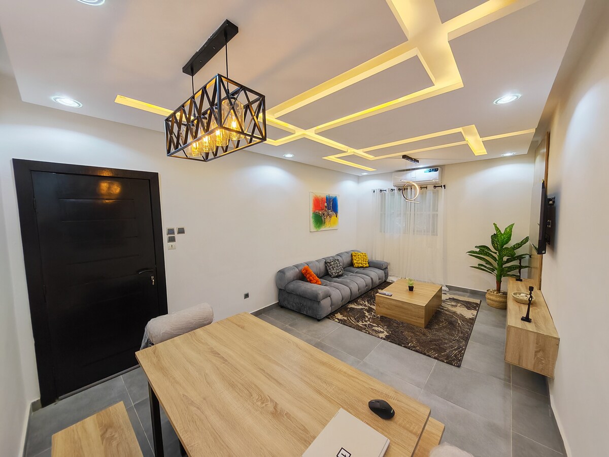 OKUSHA! Awuphuphi. Indawo enhle yokuthula enkabeni yeDolobha lase-Cotonou enethala elikhulu. Unogada wezokuvikeleka, i-concierge nendawo yokupaka kufakiwe. Indawo yokuhlala nokudlela engaphezu kuka-50 m2. I-wifi enejubane eliphezulu kakhulu. Eduze nakho konke: - Imizuzu engu-3 ukusuka esikhungweni sebhizinisi sase-Ganhi - Imizuzu engu-5 ukusuka eDantokpa Market - Imizuzu engu-6 ukusuka esithombeni esihle se-Amazon (Eya Festival) - Imizuzu engu-8 ukusuka e-Haie Vive (izindawo zokudlela, ezokuzijabulisa) - Imizuzu engu-9 ukusuka esikhumulweni sezindiza
