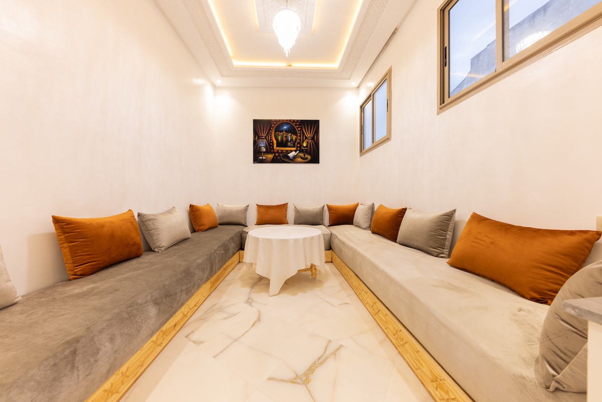 Ikhaya elithokomele, elisezingeni eliphezulu neliphumuzayo e-Rabat ezihambini ezizisa ukunethezeka, kuhlotshiswe ngokunambitheka nokunaka imininingwane endaweni ezungezile ezolile evikelekile. Itholakala phambi kolwandle, eduze nezitolo nezindawo zokudlela. Kuphinde kube yimizuzu engu-10 kuphela uhamba ngezinyawo usuka e- 'Kasbah', 'e-Old Medina' nasebhishi lase-Rabat. Leli fulethi liyindlela engcono kakhulu kubantu abashadile noma abangane abahamba e-Rabat.