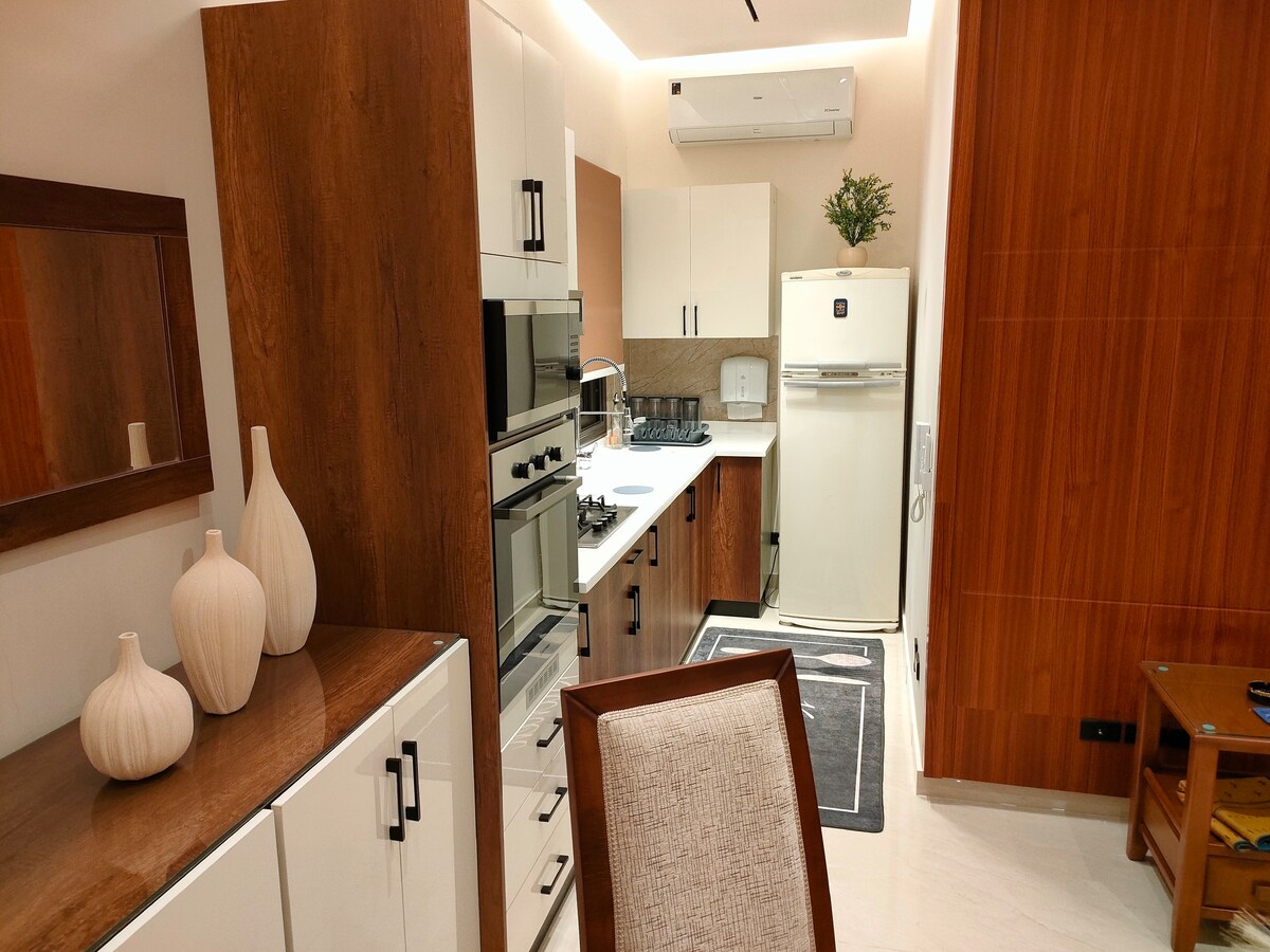 Ifulethi elinethezekile nelisesitayeleni elinamakamelo angu-2 elinombhede omkhulu ekamelweni elilodwa nama-single amabili avulekile kwelinye. Ikamelo ngalinye line-balcony encane, futhi elinye linebhokisi eliphephile. Vula ikhishi elinazo zonke izinto eziyisisekelo, izihlalo ezimbili zebha, netafula lokudlela eliyindilinga. Phumula egumbini lokuphumula elithokomele elinosofa omise okuka-L. Igumbi lokugezela line-shampoo, i-shower gel, namathawula. Isakhiwo sinokuvikeleka okungu-24/7 ne-CCTV ukuze ube nokuthula kwengqondo.