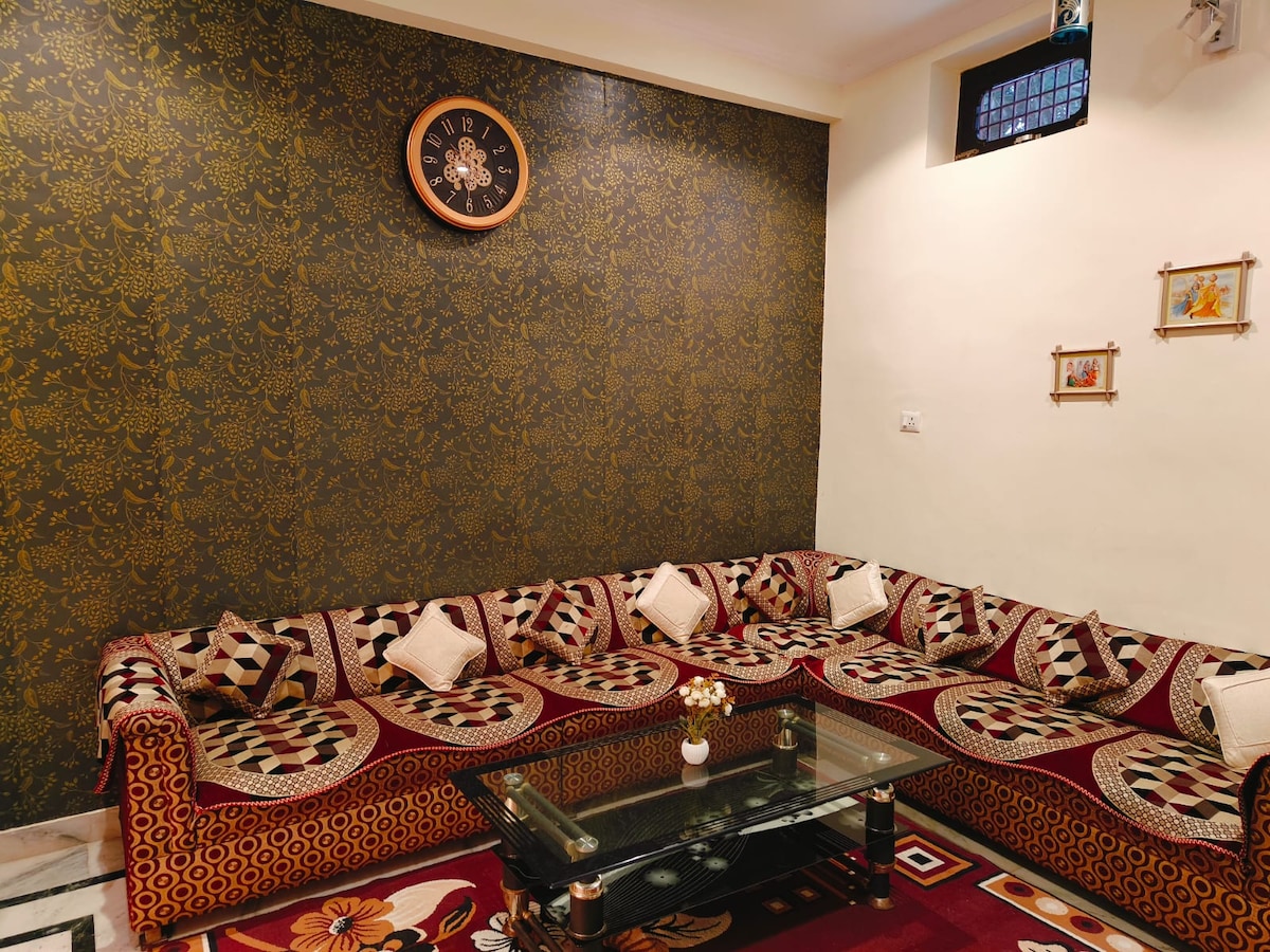 Indawo yokuhlala enokuthula eyi-1BHK eqhele nge-1 KM kuphela ne-Prem Mandir 🌸 Jabulela ukubuka i-Prem Mandir ne-Char Dham ngokuthula ubusuka kuvulande, kanye nokubuka okunye kokushona kwelanga okuhle kakhulu e-Vrindavan. Ikhaya linikeza ukuthula, induduzo nendawo yokuzindla enikezelwe yokuhlala okunomoya. Ilungele imindeni, imibhangqwana namaqembu ukuze ziphumule futhi zijabulele amandla amahle e-Braj. 📌 Phawula: Izithuthuthu 🛵 ziyatholakala eziqashisayo endaweni yokupaka yendawo ukuze kube lula ukuhamba endaweni.