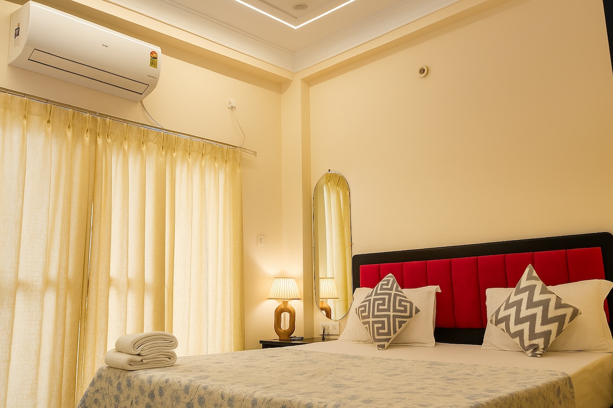 ✨Ifulethi Lonke Lesimanje Elinegumbi Lokulala Eli-1 Neghumbi Lokugezela Enkabeni e-Central Varanasi elisendaweni yokuhlala ephephile, enokuthula, elikude nomsindo wezimoto, elizungezwe indawo evulekile. Sinikeza izinto zokuhamba ezithembekile zasendaweni (imoto noma i-toto) amahora angu-24 ngenani elifanele uma kudingeka emnyango wakho ukuze uvakashelwe. ✨ Hlala ngokunethezeka nangesitayela efulethini lethu eliklanywe ngokucabangela, okuwukugibela kwemizuzu engu-10 kuphela ukuya e-Assi Ghat – inhliziyo yamasiko neyomoya ye-Varanasi. Ilungele imindeni, abangane, noma amaqembu amancane ezivakashi ezingadluli ku-4.