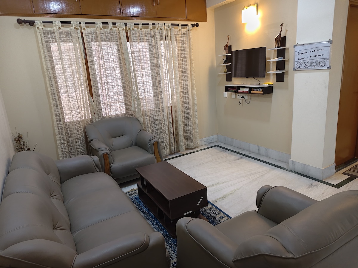 Ikhaya lethu liphakathi ne-Newtown, e-Kolkata. Isikhumulo sezindiza samazwe ngamazwe, ibhasi, i-metro, i-movie yaseshashalazini, izinxanxathela zezitolo, izimakethe, izibhedlela, amahhovisi e-IT, izindawo eziheha izivakashi futhi njll , zonke zisondelene. Sikunikeza ihholo elivulekile eline-smart T. V., indawo yokudlela, ikhishi elinakho konke, amakamelo angu-2 ane-air-conditioned anezindlu zokugezela ezinamathiselwe namabhalkoni anombhede ongu-1 wosayizi wenkosi, umbhede ongu-1 omkhulu kanye nomatilasi owengeziwe ongahlalisa abantu abangu-6 abane- ₹800 ubusuku ngabunye esivakashini sesi-6.
