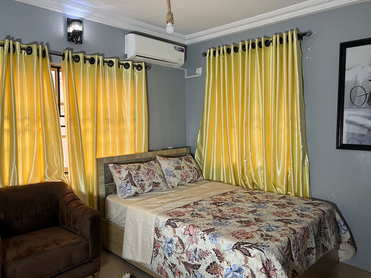 Relax in this stylish one-bedroom apartment located in a secure, serene area of Ibadan. Enjoy a fully furnished space with a cozy bedroom, modern bathroom, fast Wi-Fi, 24/7 power backup, smart TV, and a well-equipped kitchen. Ideal for business travelers or couples seeking comfort, privacy, and easy access to key parts of the city.