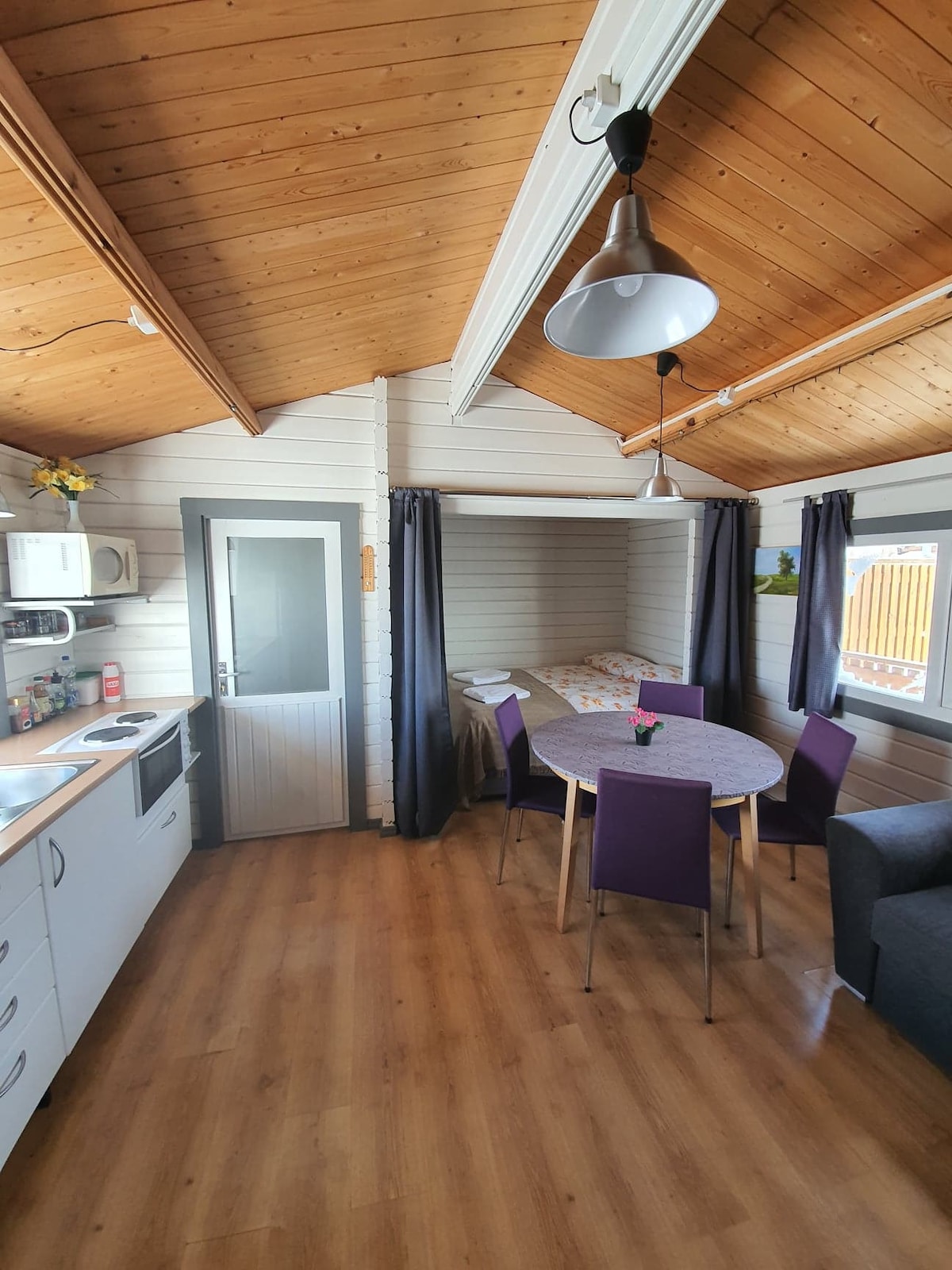 Siyakwamukela kokokuzithokozisa kwakho okuyingqayizivele kwe-Airbnb e-Iceland, le ndlu eyakhiwe ngamapulangwe encane inalo igobolondo eliyingqayizivele lengilazi elibonisa indawo emangalisayo yase-Iceland, okukuvumela ukuba uzicwilise ngempela ubuhle bale ndawo emangalisayo. Njengoba ungena ngaphakathi, uzobingelelwa ingaphakathi elithokomele nelithokomele, elinombhede olala abantu ababili onikeza ukubukeka kwe-panoramic ngefasitela lesibuko. Ilungele izihambi ezihamba zodwa noma imibhangqwana efuna ukuvakasha okuyingqayizivele nokukhuthazayo. Inombolo yelayisensi HG-00017975.