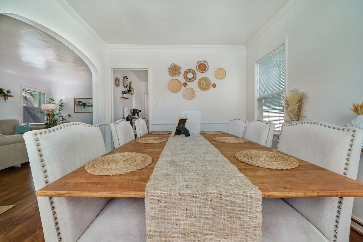 Ngena kusofa wesikhumba ngaphansi kwefasitela elinamapulangwe elingunxantathu futhi ujabulele ubuciko namaragi anemibalabala agcwalisa leli khaya lesitayela sase-Spain. Ngaphandle, thubeleza echibini lokubhukuda elihlanganyelwayo, uphumule ku-patio enelanga, noma uhlangane emgodini womlilo. Sicela uphawule ukuthi, kukhona indlu yezivakashi egcekeni elingemuva. Igceke elingemuva liyindawo evamile phakathi kwezivakashi. Indawo yokubhukuda encane, ijule ngamamitha angu-3.5 kuphela. Zonke izivakashi kufanele zisebenzise ukuqonda kwazo ekuziqhelelaneni komphakathi. Le ndawo yindlu yakudala yase-Spain eyakhiwe ngo-1932, kodwa iye yalungiswa ngokuphelele nakho konke okusha. Sisezinhliziyweni zendawo yomlando yase-Wrigley e-Long Beach. Ikhishi elinakho konke, amalineni ahlotshisiwe (i-hypoallergenic), amathawula, imidlalo, ne-Netflix ikulindile. Uzothola ikhofi, itiye, amanzi, nezinto ezimnandi ezijikelezayo ezintantayo. Uzophinde uthande ithelevishini engu-56 intshi ye-4k Smart LED. I-Jet eya edolobheni, ebhishi, i-Bixby Knolls, i-Cal Heights noma i-Belmont Shore kungakapheli imizuzu. Izindawo zokudlela ezihlukahlukene zamasiko ezinokudla okumnandi, nezitolo zekhofi ezimangalisayo, ezizungeze omakhelwane ngemoto nje emfushane. -I-Spanish House inendlu encane yezivakashi ehlukaniswe ngokuphelele ngemuva kwegceke ebizwa ngokuthi "I-Little Bungalow" ephinde ibe yi-airbnb. Ngaphandle kwalokho yonke indlu eyinhloko yangaphambili ingeyakho ngokuphelele futhi iyimfihlo! -I-pool nomgodi womlilo yizindawo ezivamile, kodwa ungazisebenzisa nganoma yisiphi isikhathi. -Uzonikezwa ikhodi yokungena yesikhashana yomnyango wangaphambili ngaphambi kokufika kwakho. Sicela uphawule ukuthi, umnyango uyakhiya ngokuzenzakalelayo lapho uphuma, ngakho-ke kuzodingeka ufake ikhodi yokungena isikhathi ngasinye. Ungangibona ngiphuma egcekeni elingemuva ngezinye izikhathi, zizwe ukhululekile ukuza uzobingelela. Ngezinye izikhathi ngenza abangane futhi sixoxa ngaphandle emgodini womlilo, ngezinye izikhathi ngingekho. Nokho, ngizohlonipha ubumfihlo bakho futhi izinga lethu lokuxhumana lizoba yizinto eziphilayo. Uma unemibuzo phakathi nokuhlala kwakho, unganqikazi ukungithumelela umyalezo! Ikhaya lisendaweni ehlukahlukene engokwesiko nezakhiwo zase-Long Beach. Izitolo nezindawo zokudlela ziqhele ngamabhlogo amahlanu noma ayisithupha, ngakho-ke kulula ukuhamba ngebhayisikili, ukushayela, noma ukugibela-ukuhlanganyela esikhundleni sokuhamba uye ezindaweni ezihehayo. Ibhishi, i-aquarium, i-Queen Mary, nesikhungo somhlangano konke kuqhele ngamakhilomitha angu-2.5-3. Abanye abantu bhayisikili, kodwa ngitusa ukushayela/I-UBER/Lyft ukuze bafike ezindaweni eziningi. 1) Kukhona i-airbnb eyodwa ebizwa ngokuthi "The Little Bungalow" etholakala ngemuva kwegceke. Lokhu kuhluke ngokuphelele ngendawo yayo yokungena. 2) Indlu yase-Spain inendawo yayo yokupaka yangasese ngaphambili. 3) Igceke elingemuva eliyinhloko liyindawo evamile, ukuze zonke izivakashi zihlanganyele futhi zisebenzise indawo yokubhukuda, nomgodi womlilo. 4) Umfana wase-pool uza ekuseni ngoLwesihlanu ukuze kulungiswe imizuzu engu-15. 5) Abalimi bezingadi beza ngoLwesithathu ukulungiswa kwehora elilodwa.