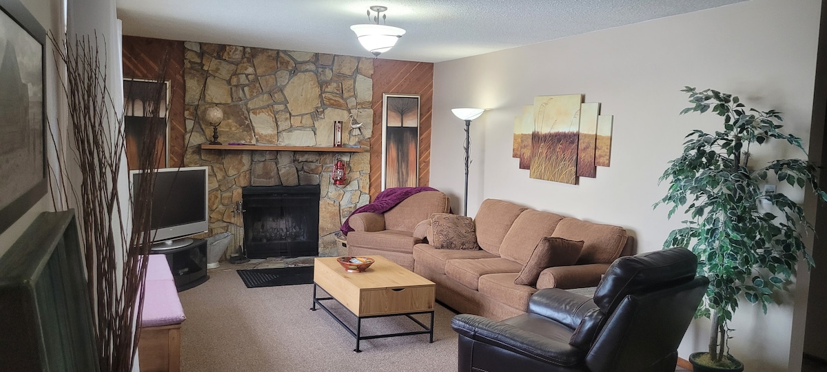 Siyakwamukela eholidini lakho! Ukuhlobisa kungokwesimanje, kunambitheka futhi kuyaheha. Umqondo ovulekile wegumbi lokuphumula unamafasitela amakhulu aletha ukukhanya kwemvelo namafreyimu okubukwa kwezintaba okumangalisayo. Ikamelo lokulala linombhede omkhulu w/ophahleni oluvulekile. Jabulela izindawo zaphansi zegumbi lokugezela elishisayo, osinki ababili, ishawa yemvula nobhavu. Umpheme omkhulu ophezu kophahla ophrayivethi uhlinzeka ngezindawo ezibabazekayo ze-Rockies! Itholakala ngezinyawo ibanga elifushane ukusuka enkabeni yedolobha lase-Banff futhi inikeza indawo yokungena yezivakashi ephrayivethi.