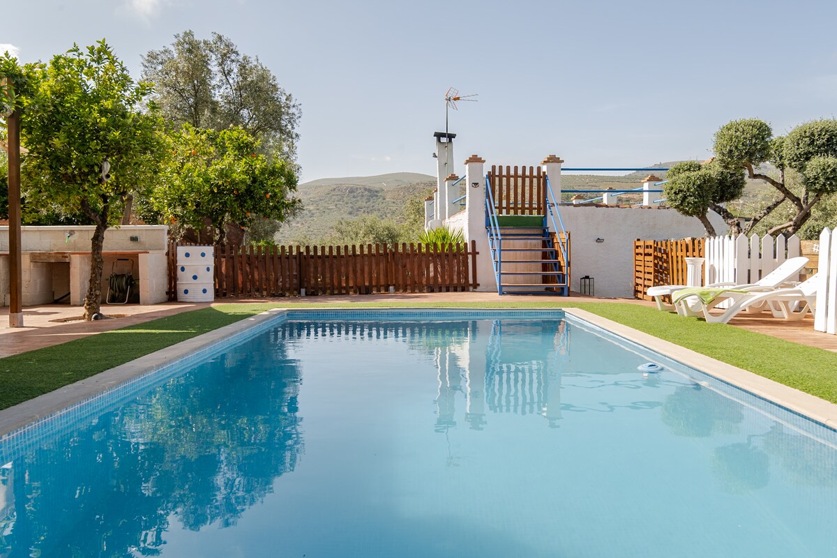 I-villa enhle yasezintabeni ene-Private Pool. Uma uthanda imvelo, khona-ke lena yindawo efanele yokuhlala! Kungamakhilomitha angu-19 kuphela ukuya endaweni yokushushuluza i-Sierra Nevada kanti angu-18 ukuya e-Alhambra e-Granada. Jabulela indawo enhle, futhi uphefumule entabeni kule villa entsha e-Guejar Sierra! Ingadi enkulu enezihlahla eziningi zezithelo, nezindawo ezinhle eziya e-Sierra Nevada. Indlu isha futhi iyayimanje futhi yakhiwe ngo-2024. (Ihlukaniswe ngokuphelele) Indawo Yokubhukuda Eziphelele (ayifudumezwanga futhi ivalwa kusukela ngo-1 Nov - 1 May)