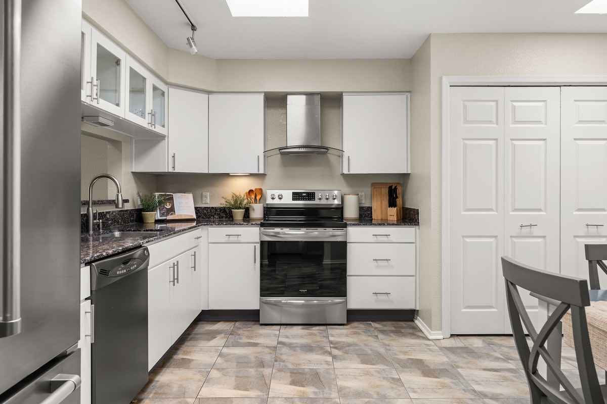 Phumula futhi uphumule kule ndawo ezolile, esesitayeleni. Indlu yethu ethokomele itholakala endaweni ephakathi kakhulu yase-Albuquerque enamathuba ahlukahlukene, njengezitolo zekhofi, ama-pub, izinxanxathela zezitolo, izindawo zokudlela, izibhedlela, izikhungo zezempilo, namapaki amahle. Ukungena kwesivakashi Indlu yonke enamakamelo amathathu namagumbi okugezela amabili. Umbhede owodwa omkhulu, umbhede ogcwele, nomunye umbhede ogcwele. Izindawo zehhovisi emakamelweni amabili. I-wifi yejubane eliphezulu ene-Netflix, i-Hulu, ividiyo eyinhloko, ne-ps5. Ine-oasis yegceke elingemuva.