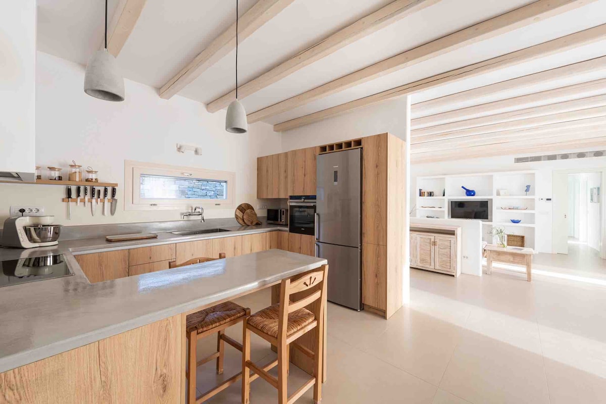 A bright, peaceful house with generous outdoor spaces and a private pool, perfect for relaxed island living. Enjoy terraces, a garden, a pool deck, and a shaded pergola with a barbecue. The layout is ideal for two couples, with one bedroom and bathroom downstairs and another upstairs, each offering privacy and their own outdoor space, including a large terrace upstairs. For longer stays, a complimentary mid-stay refresh is included.
