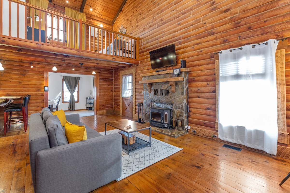 😍 <b>Indlu eyakhiwe ngamapulangwe yase-Sourwood e-Kindle 🔥 Ridge</b> ⛰️ Jabulela emvelweni NOKUNETHEZEKA kuma-acre angasese angu-40 ngokubukwa kwe-North Georgia Mountains. • Ukubuka Izintaba • Ubhavu wokucwilisa • Ama-shower angaphandle • Ubhavu wamanzi ashisayo • Amashawa angaphakathi • I-queen day bed swing • I-Projector enesikrini esingamasentimitha angu-120 • I-firepit yegesi • Indawo yokosa igesi • Ikhishi • I-King bed • I-Wifi Faka indlu yethu ohlwini lwakho lwezifiso<b> </b> ngokuchofoza ❤️ ekhoneni eliphezulu kwesokudla.
