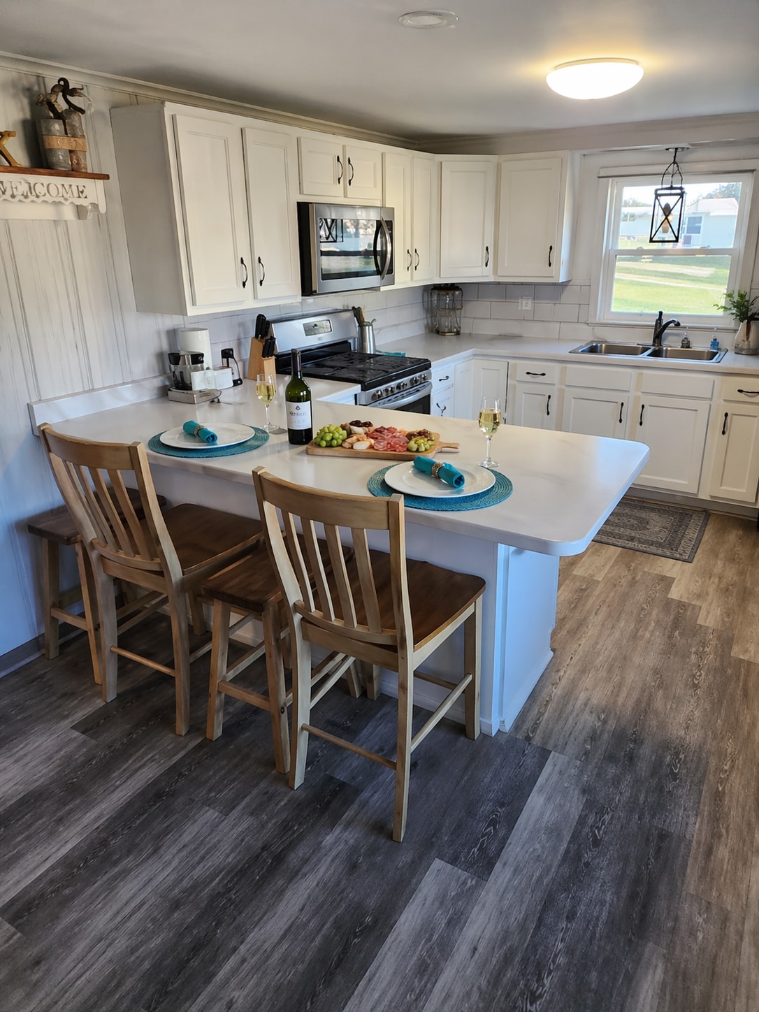 Nestled at the woods edge and named after our resident owl, Hooting Haus is a European styled cabin retreat close to all Penn State offers. The gourmet kitchen's rustic charm features a zinc island, butcher block counter and natural stone wall. Entertain guests at the artisan crafted pine table while dining next to the antique fireplace. Relax with a hot tub soak, then cap the evening sharing stories under an inky sky gathered round the fire pit with a soothing hot toddy or mug of creamy cocoa.