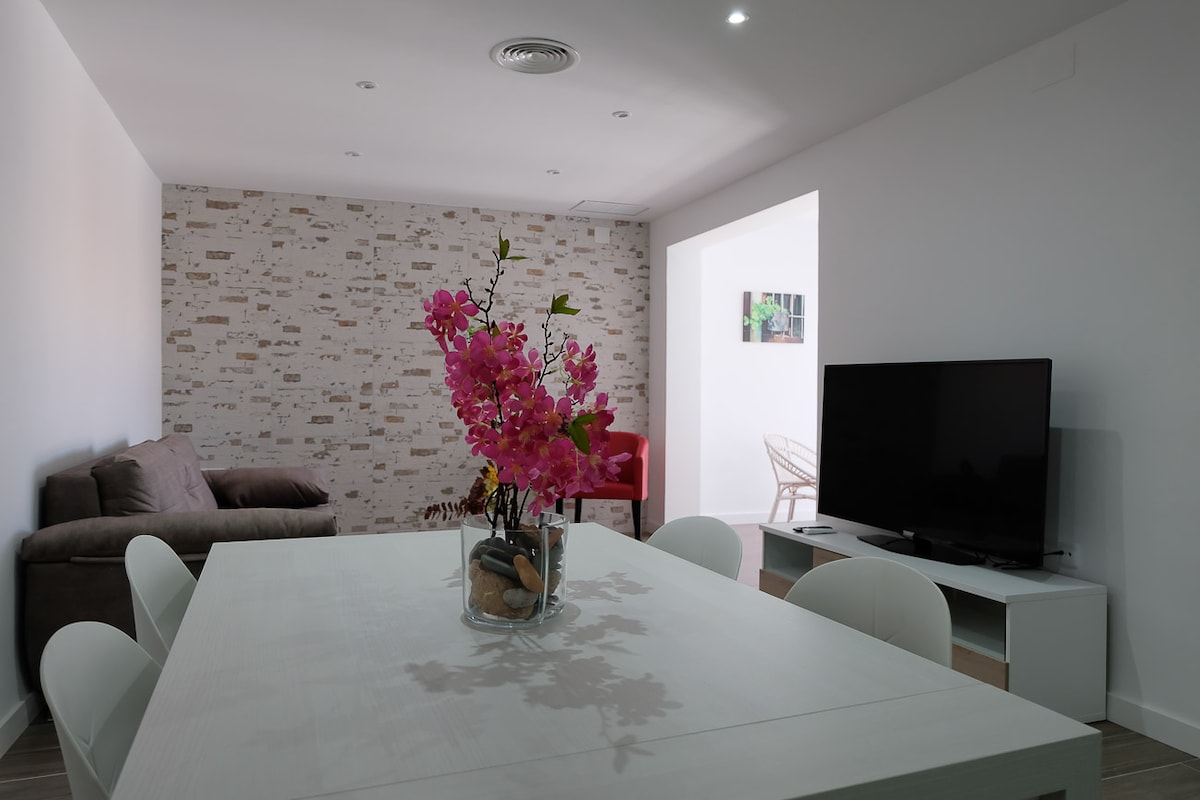 Ifulethi eliphakathi nendawo, elisebenzayo nelikhanyayo. Inakho konke ukunethezeka kwekhaya. Ikhishi elinefenisha ephelele nelinezinto ezidingekayo. Indlu yangasese enobhavu, indlu yangasese. Ine-loft enefenisha nethala lasehlobo. Amakamelo anekhabethe nezinto zombhede, kanye namathawula. I-TV egumbini lokudlela, i-ayina, umshini wokuwasha, uhhavini, ukushisa ne-air conditioning ezindaweni eziyinhloko. 200 m. kusuka ku-Plaza Mayor ngezinyawo; ikhemisi, imakethe nezindawo zokudlela emgwaqweni ofanayo.
