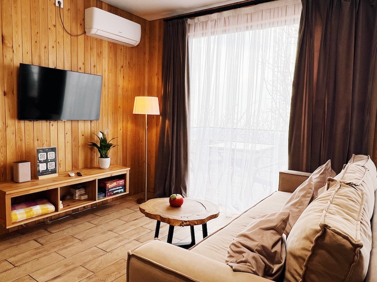 Faka kabusha kule ndawo ezolile nenesitayela. Indlu eyakhiwe ngamapulangwe ethulile, ethokomele eqhele ngemizuzu engu-15 ukusuka enkabeni yedolobha izokuvumela ukuthi ujabulele bonke ubuhle nokuzola kwezintaba zase-Almaty! Indlu yethu eyakhiwe ngamapulangwe iyatholakala ukuze uchithe izinsuku ezimbalwa ezingenakulibaleka. Umzila wokuhamba ngezinyawo oya e-Kok Giilau Plateau uqala eduze nendlu yethu eyakhiwe ngamapulangwe, futhi ubhavu wangempela wokhuni we-souga uzokuvumela ukuba uphumule ngemva kokuhamba intaba.