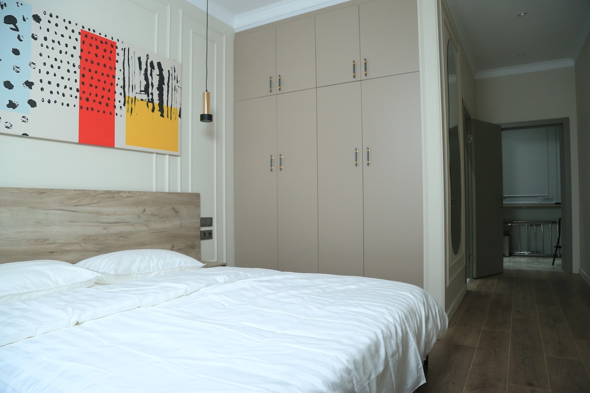 Описание апартаментов: - Пластиковые окна для улучшенной звукоизоляции. - Современная встроенная кухня с новой сантехникой. - Тихий двор и бесплатный Wi-Fi. - В наличии холодильник, стиральная машина-автомат, кабельное ТВ. Удобства: - Премиальное белое постельное белье и полотенца, стираемые в химчистке. - Полный комплект посуды для приема и приготовления пищи. - Фен, утюг и гладильная доска. - Обслуживание апартаментов горничными с опытом работы в 5* отелях.