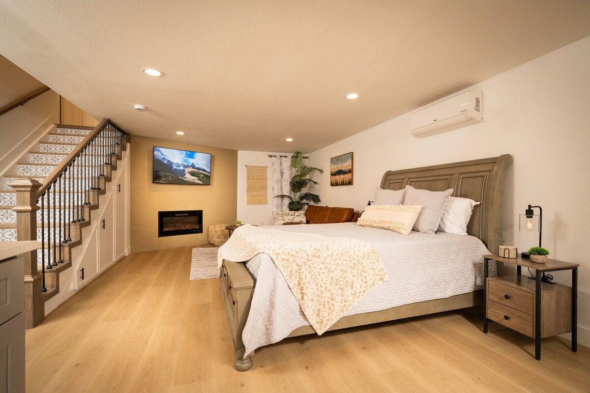 I-studio esikhulu esinombhede owodwa omkhulu + izinto eziyisisekelo zasekhishini. Indawo yokungena ehlukile + emphemeni ophrayivethi endaweni ethulile. Izindawo zokudlela + izitolo zekhofi eziseduze endaweni yase-Boulder eyaziwa ngokuthi yi-Gunbarrel. I-Central Boulder 15 imiz. Longmont 15 imiz. I-microwave, iketela likagesi, umshini wekhofi, i-skillet kagesi, i-blender, i-panini press, i-bar fridge (ayikho ifriji) nosinki (egumbini lokugezela). I-Wall mount mini-split air conditioning/ukushisa. Akukho ukuhlanzwa kwephunga. Ayikho i-TV. Ukushaja kwe-EV kuyatholakala-imininingwane kwenye ingxenye. Ishaja ye-J1772