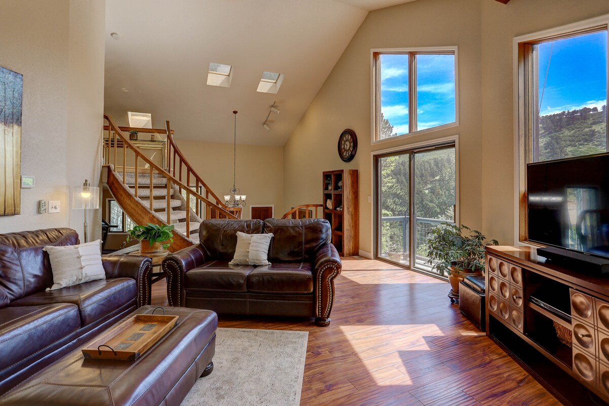 Itholakala e-Boulder i-Airbnb yethu inikeza ukubukwa kwe-Flatirons ne-B Bear Peak kanye nendawo ethulile negceke elingemuva elivulekile. Indawo inendawo yokungena eyenzelwe izivakashi kuphela, amakamelo okulala amabili anombhede omkhulu, kanye nombhede owodwa ogcwele. Igumbi elikhulu lokuphumula elinendawo yokubasa umlilo, indawo yokudlela, ikhishi elinakho konke nendawo yokugezela ephelele. I-yoga studio encane esayithini. Ilayisensi yeDolobha LASEBOULDER Str (sithumelele umyalezo emininingwaneni eyengeziwe yokupheka)