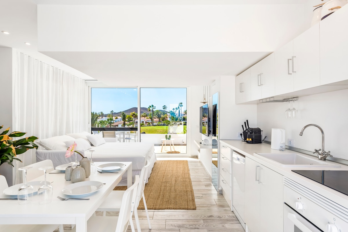 IPharadesi Lilindile E-Tenerife Escape Yethu! Zicabange uvuka uzwa umsindo wamagagasi nephunga elisha lomoya wasolwandle. Ikhaya lethu elivulekile nelinakho konke, elisogwini olumangalisayo, linikeza iholide elikahle kakhulu kuwe nabathandekayo bakho (izivakashi ezingaba ngu-6!). Zijabulise esiqhingini phakathi kwezinkundla zegalofu ezihlala ziluhlaza, imizuzu engu-15 nje uhamba ngemoto usuka e-Tenerife South Airport, kanye nendawo yokubhukuda efudumele, ibhishi le-pebble elihlanzekile nepaki likazwelonke emnyango wakho.