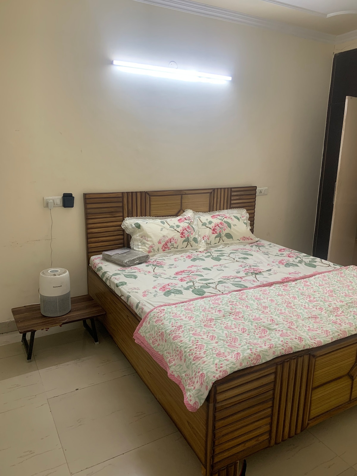 Leli fulethi lesitudiyo elivulekile lilandela izimiso zokuklama ezincane. Ifakwe ikhishi, amagumbi okugezela amabili, umbhede we-King osayizi ophelele, i-queen size Wall Bed, i-TV ene-Netflix, i-Hotstar, i-PrimeVideo, i-JioCinema ne-WiFi yamahhala, le ndawo iyakwazi ukubungaza ngokunethezeka umndeni wabantu abane. Sicela UQAPHELE: Leli yifulethi elivulekile, futhi awekho amakamelo okulala aphrayivethi, ifulethi lisesitezi sesibili, ngakho-ke kuzodingeka ukhuphuke ngezitebhisi ezimbili. Awekho AMAPHATHI NGIYACELA 🙏🏽 futhi AKUBHENYWA 🚭