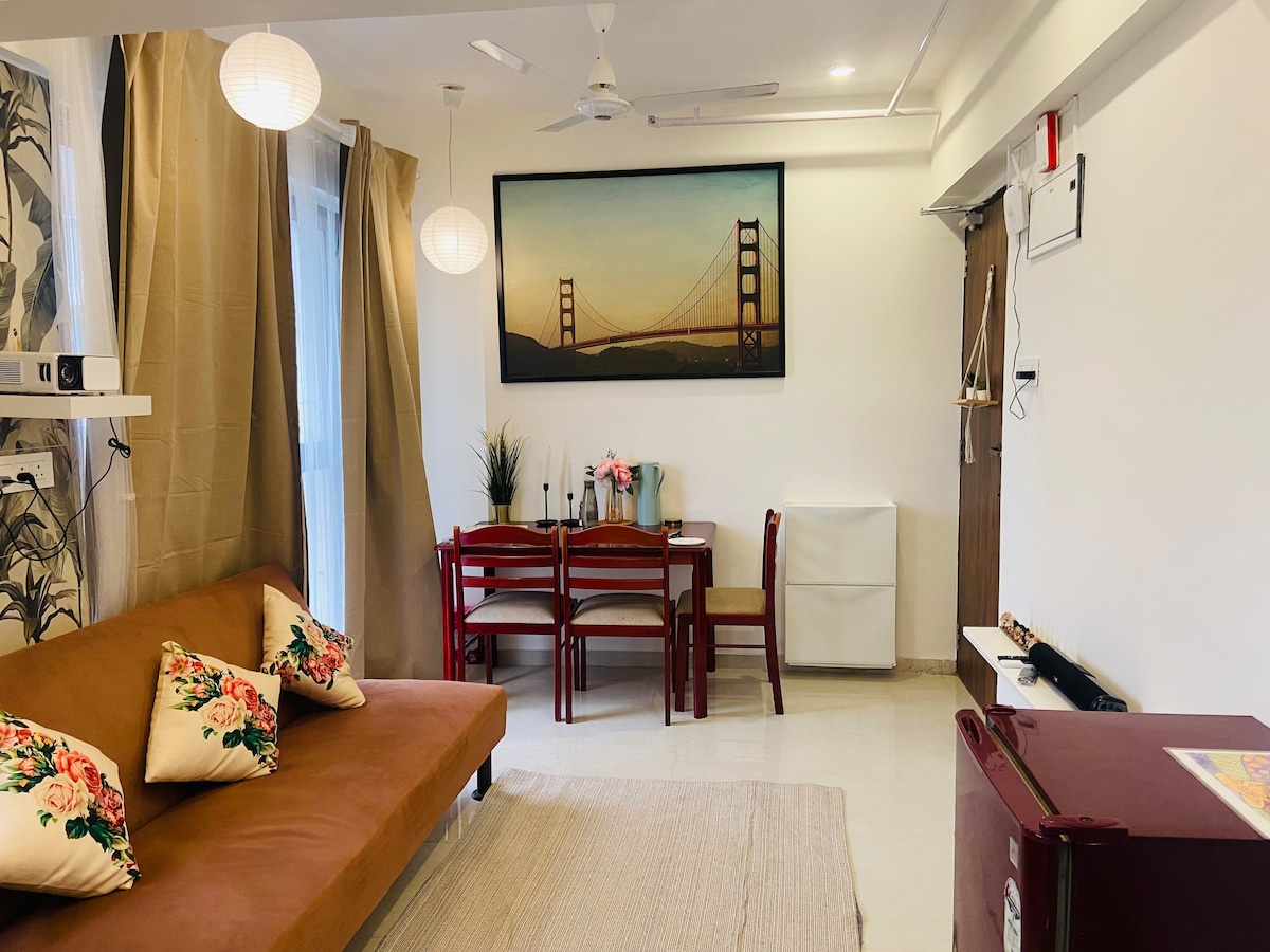 Beautiful 1 bhk apartment with city view & sea view.Purely aesthetic & self designed. Its a 1 Bhk apartment on the top floor with the best view About the apartment Its on top floor with great view. It has everything you need like AC,Smart TV,Sofa,Kitchen,Gyser,Microwave and fully equipped kitchen Cafes,Beach,Bar,Restaurant,Market all at walking distance Hardly 30mins away from Airport This is your place where you would love to live and gonna be special.
