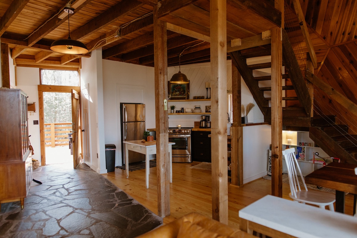 Thola igugu nje imizuzu engu-9 ukusuka edolobheni lase-Dahlonega: indlu eyakhiwe ngamapulangwe engilazi efakwe kuma-acre angasese angu-3.5 enkabeni yezwe lewayini. Jabulela izindawo eziphansi kuya ophahlathini ezibukwa kuwo wonke amagumbi. OMG! Itholakala endaweni eyaziwayo ngebhayisikili, uhamba ngezinyawo endleleni yakho emizileni ebabazekayo ukusuka emnyango. Amakhilomitha angu-6 kuphela ukusuka ku-Appalachian Trail edumile, kuwukuhlanganiswa kokunethezeka nobuhle bemvelo. Jabulela izivini ezisezingeni lomhlaba noma ufune uhambo lwangaphandle olungenamkhawulo. Indawo engenakulinganiswa ehlathini lase-Dahlonega elilindile.