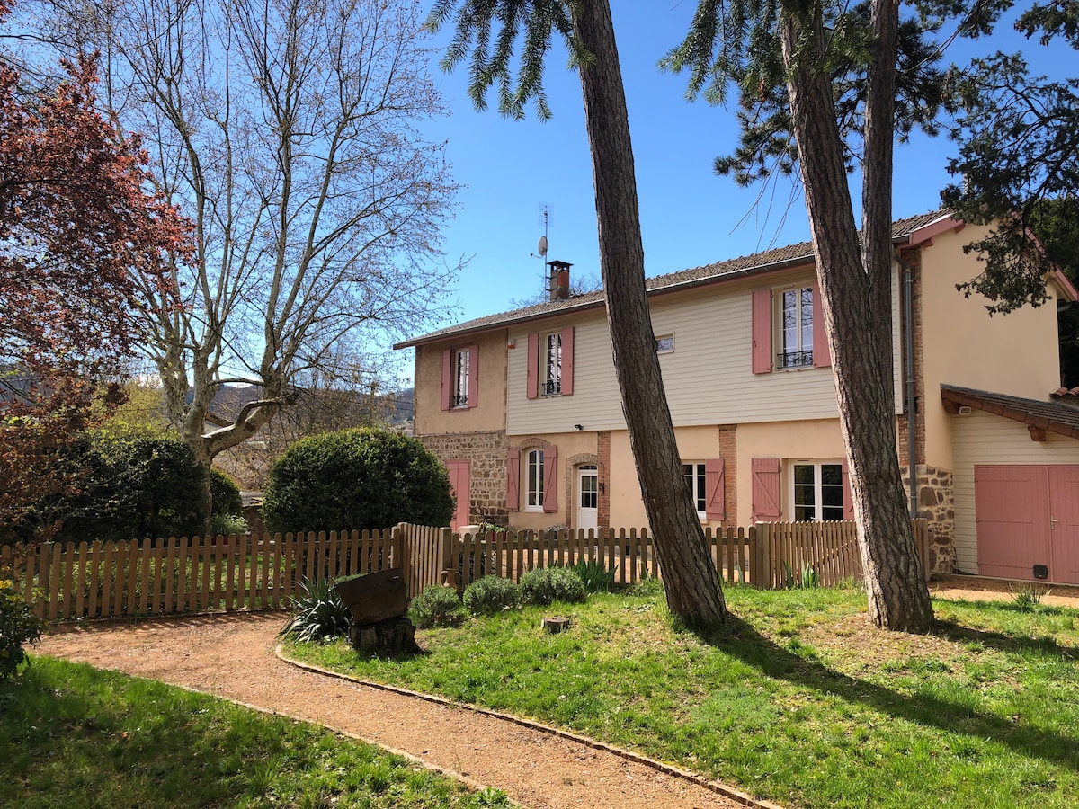 Indlwana yamatshe ekhangayo, esemagqumeni e-Beaujolais, phakathi kwezivini nezihlahla ze-cherry. Izinto ezilungiswe kahle nekhwalithi, zizokunikeza konke ukunethezeka ukuze uphumule endaweni ezolile yasemaphandleni futhi ujabulele ingadi yayo encane yangasese enezihlahla. Ihora elingu-1/2 kuphela ukusuka e-Lyon, ungathola isivini, amadolobhana amatshe egolide noma izintaba eziningi ngezinyawo noma ngebhayisikili. Isiteshi sokushaja sikagesi siyatholakala. Siyajabula kakhulu ukuba nawe lapha.