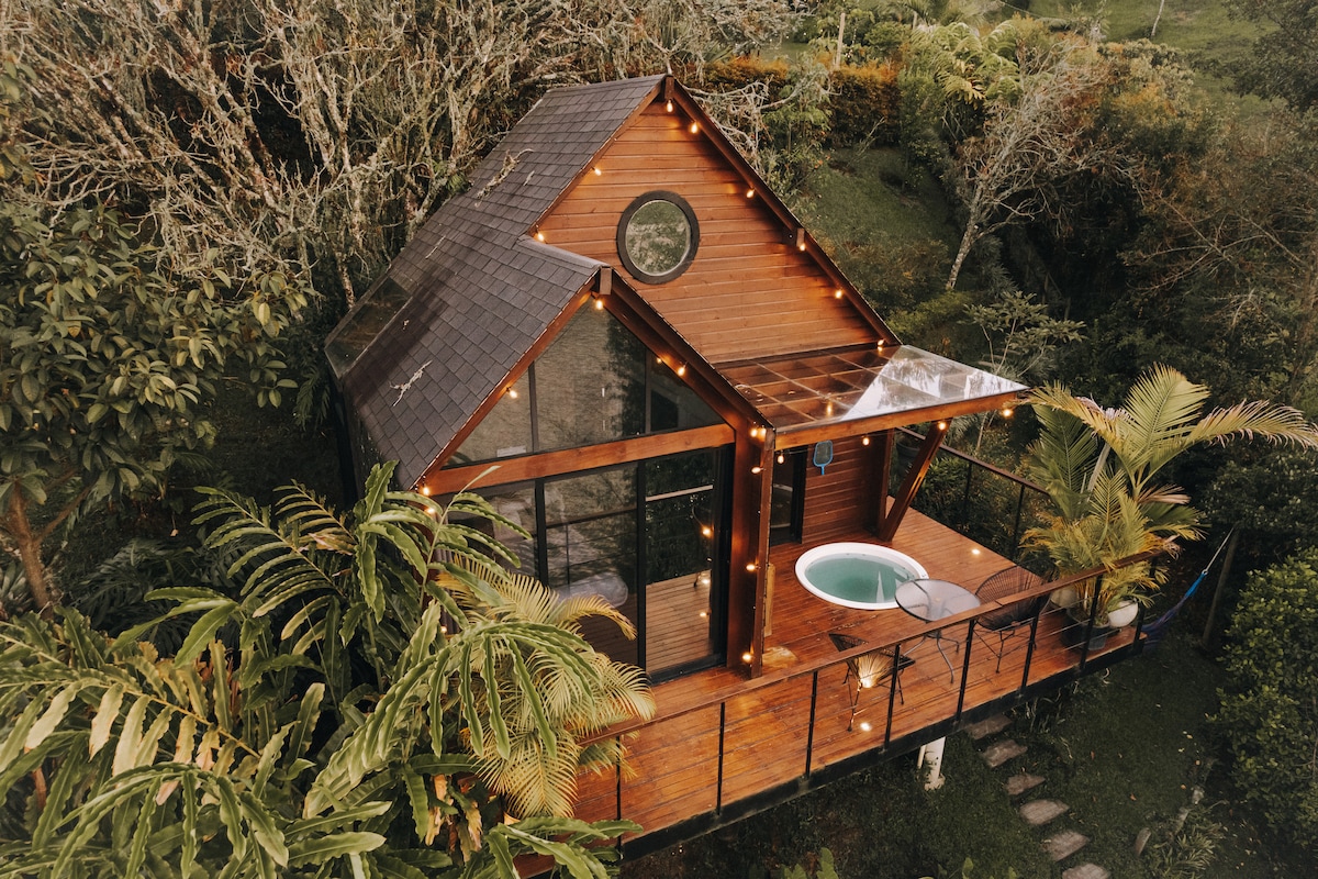 Izindlu zase-Jaguar zitholakala kalula phakathi nenkaba yedolobha kanye nezinye zezindawo ezithandwa kakhulu endaweni njenge-Canopy Zip Lining, Amabhuloho Amisiwe kanye ne-Santa Elena Nature Reserve. Ikhuthazwe izakhiwo zase-Nordic, i-Jaguar yakhiwe ngamakhaya angu-3 azimele, aphakanyiswe ezinsika, akunikeza umbono wokutshuza ezihlahleni. Izindlu ezingu-3 ziyafana nokho umbono ungashintsha kancane ukusuka kwenye uye kwenye. Izithombe ezisetshenziselwa indlu ngayinye ziyingxube yezindlu ezingu-3.