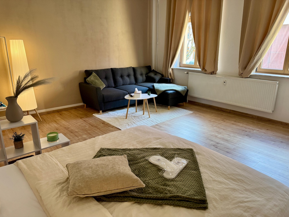 Lesi situdiyo sesimanje sokubuka idolobha enkabeni ye-Dessau sinikeza indawo yokuhlala ekhanyayo nethokomele ene-balcony ephrayivethi lapho ungajabulela khona izindawo ezinhle. Ifulethi linekhishi elifakiwe, elilungele ukulungiselela ukudla, nendawo yokupaka yamahhala emgwaqweni okulula ukuyithola. Itholakala ebangeni lokuhamba ngezinyawo ukuya ezindaweni zokudlela, ebhikawozi, nasesuphamakethe, iphinde inikeze ukufinyelela okulula ezindaweni ezihamba phambili ze-Dessau, okuhlanganisa i-Bauhaus Museum ne-Georgium Palace. Ilungele imibhangqwana, izihambi ezihamba zodwa, nezivakashi zebhizinisi.
