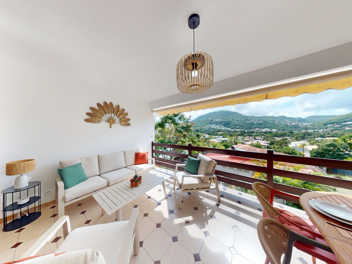 Ifulethi lase-Grand Large liyisitezi esiphezulu esinamakamelo amathathu esinekheshi, esinakho konke, indawo evulekile engu-165 m2 (okuhlanganisa i-60 m2 yethala) endaweni yokuhlala evikelekile e-Les Trois Ilets. Uma usendaweni enkulu ungajabulela ukubukeka okugcwele kolwandle kanye netheku lase-Fort De France. Ibhishi lokuqala lase-Anse Mitan liqhele ngamamitha angu-200, liqhele ngezinyawo. Ifulethi linamakamelo amahle angu-2 anomoya oshisayo abheke ulwandle. Uzothola izindlu zokugezela ezimbili. Igalaji livaliwe