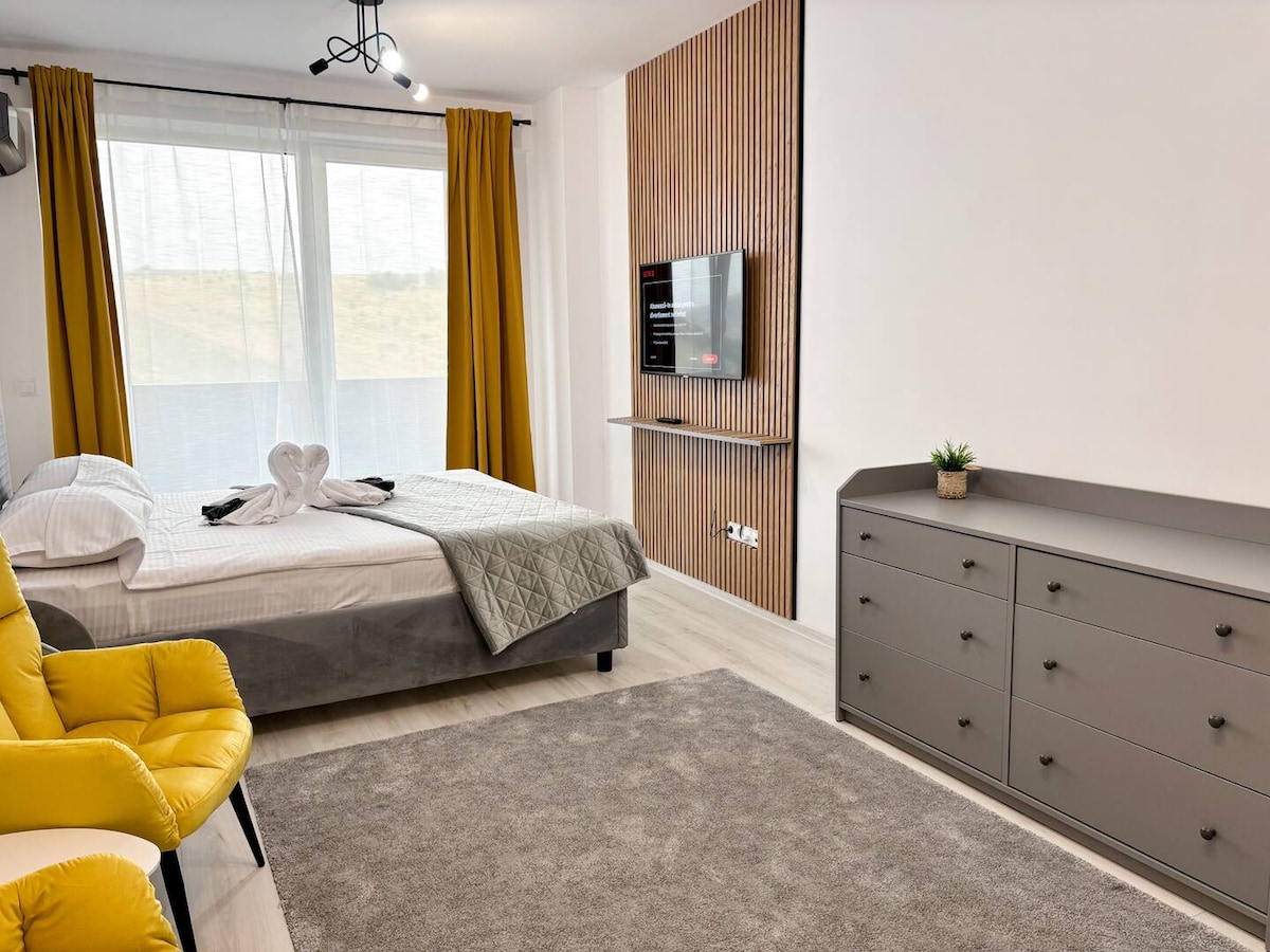 Uhamba ngebhizinisi noma udinga indawo eyiphrofeshinali, ethokomele eduze ne-Cluj Airport? Leli fulethi elinakho konke lisendaweni eqhele ngemizuzu engu-5 futhi linikeza konke okudingayo ukuze ube nokuhlala okukhiqizayo nokuphumuzayo. Ukuzingenela, i-Wi-Fi enejubane eliphezulu, namasevisi ezinga eliphezulu afakiwe. Idizayinwe kucatshangelwa abantu abahamba ngebhizinisi, ifulethi lihlanganisa ingaphakathi elihle, lesimanje nezici ezihlakaniphile nendawo ethulile, ekahle kakhulu emsebenzini nasekuphumuleni. Jabulela okokuzithokozisa kwendawo yokuhlala esezingeni eliphezulu.