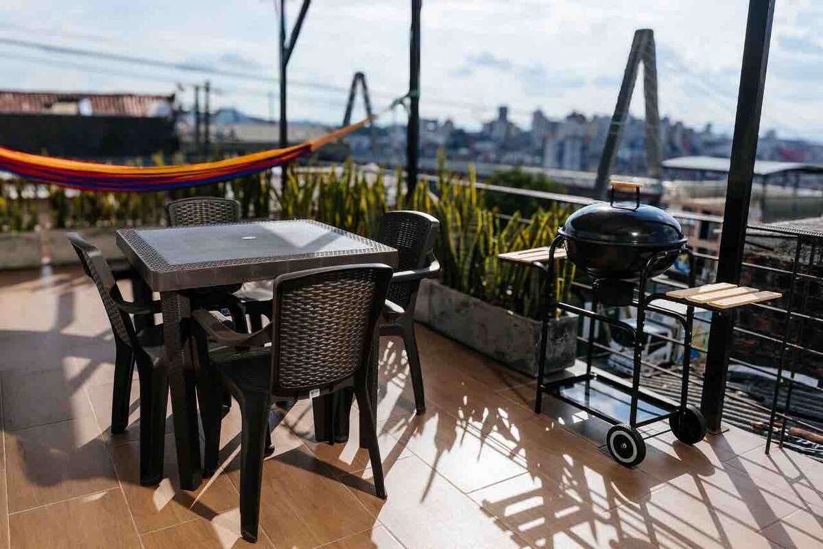 Umndeni wakho uzoba seduze nakho konke lapho uhlala kule ndawo yokuhlala, imizuzu engu-15 nje ukusuka maphakathi uma unquma ukuhamba kancane. Jabulela ifulethi elinakho konke ukuze uphumule noma uhlanganyele nomndeni wakho. Sikunikeza ithala elithokomele nelikhulu elimboziwe elenzelwe wena nomndeni wakho, kungakhathaliseki ukuthi ufuna ukuphuza ikhofi elinombono omuhle wokushona kwelanga e-Pereira noma ulungiselele okuthile phezu kwamalahle. Sinendawo yokosa nokubhema emgqonyeni.