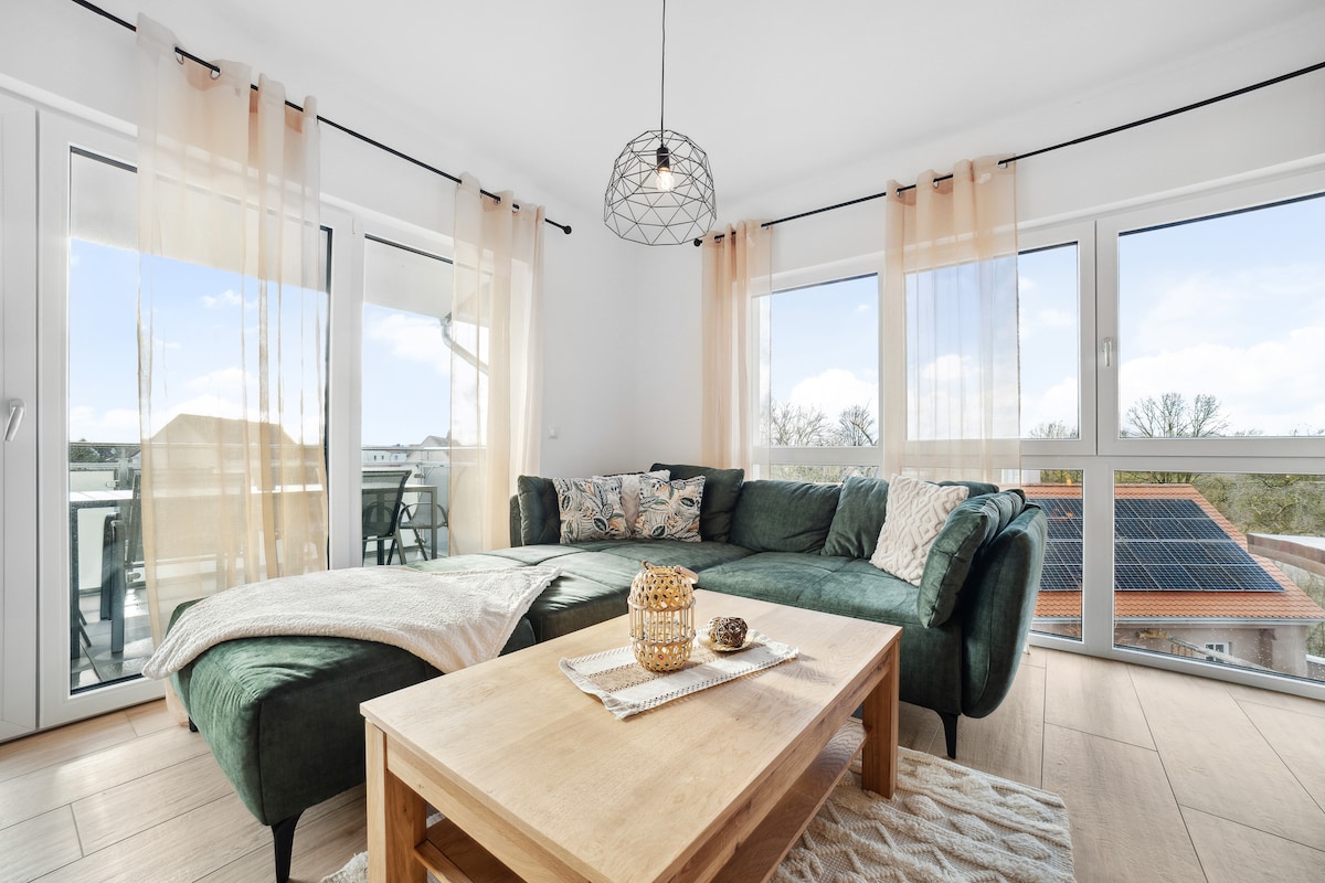 Ifulethi elihle eliphakathi kwe-Hesselberg ne-Altmühlsee. Indawo yokuhlala evulekile inekamelo lokulala, ikamelo lezingane, ikhishi elivulekile, igumbi lokugezela elikhulu elinobhavu wasekhoneni negumbi lokuhlala elithokomele elinosofa nendawo ye-TV, ifulethi likunikeza ukuhlala okumnandi e-Franconia yothando. Engadini yethu, wamukelekile ukuvula i-barbecue noma ukuqeda ubusuku ngomlilo wokukhempa esitsheni sethu somlilo.