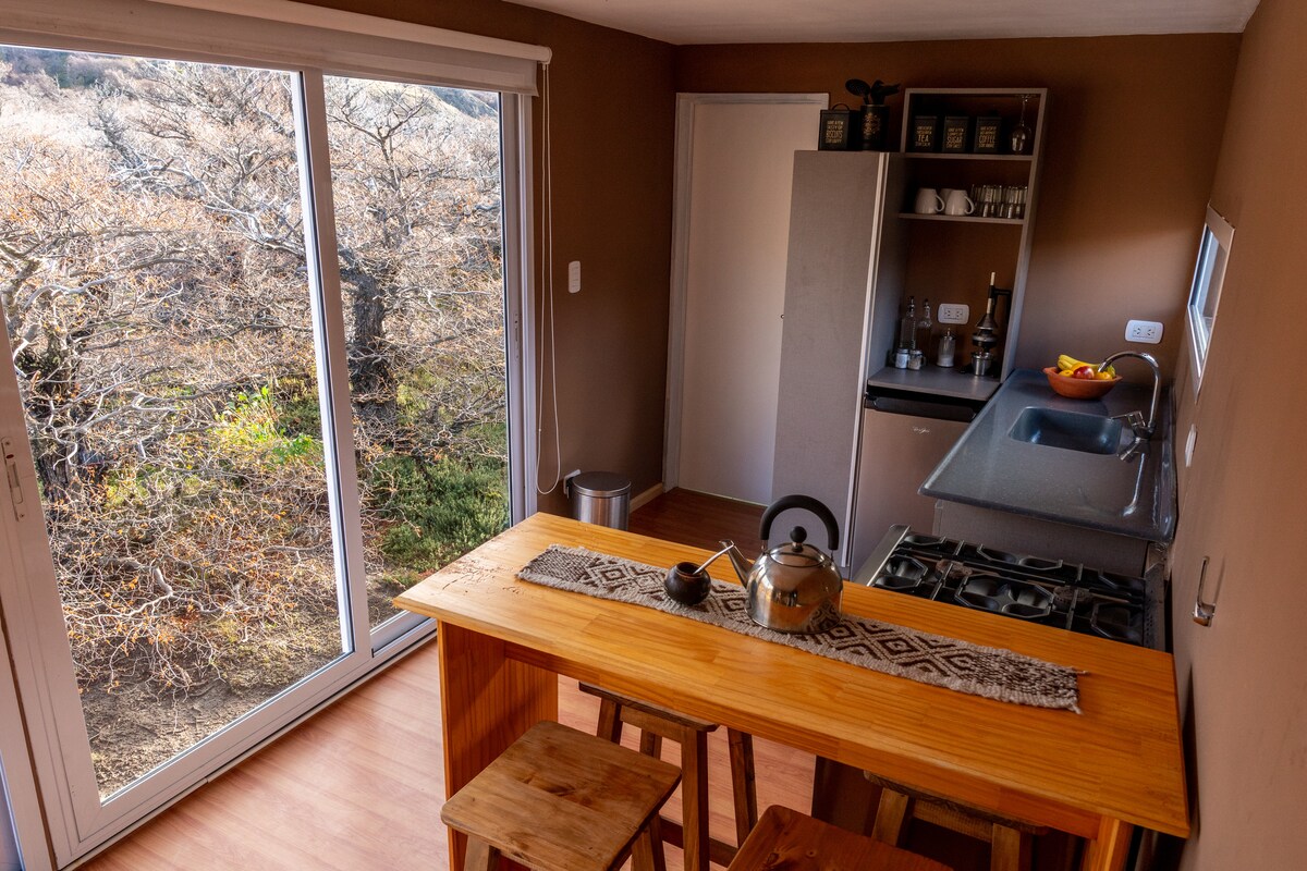 Indawo ethulile nephephile yale ndawo esemaphandleni izolibaleka. Le ndlu entsha inekamelo eliphrayivethi eliphindwe kabili kanye nombhede owodwa, ingadi enhle enomgodi womlilo wangaphandle. Ikhishi lineketela likagesi, i-microwave, ifriji, umshini wokuwasha, i-toaster, i-juicer, igumbi lokugezela elivulekile nelithokomele. Iphinde ibe nompheme omuhle futhi ovikelekile lapho ungajabulela khona umbono omuhle kakhulu weLake Argentino, i-Patagonian steppe kanye nokushona kwayo okumangalisayo.