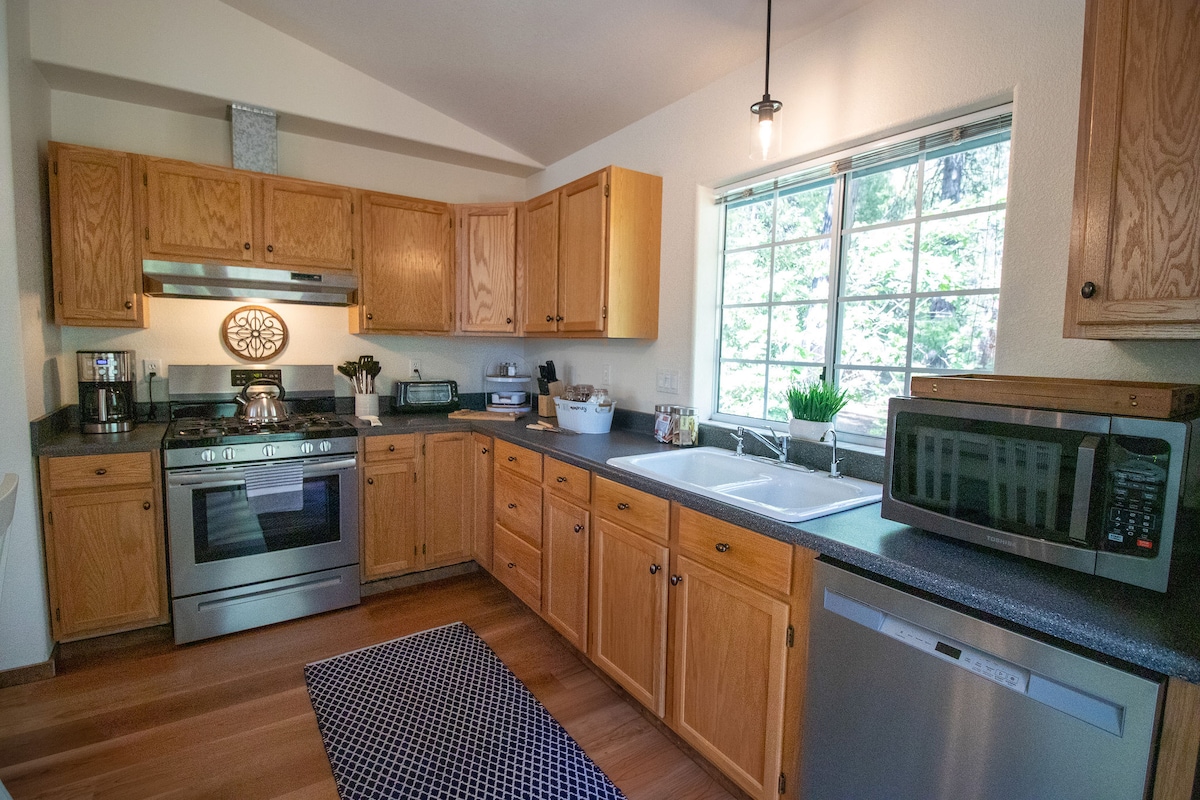 Le ndlu eyakhiwe ngamapulangwe isanda kulungiswa ngefenisha ephezulu nezinto zikagesi endaweni ethulile kodwa eseduze namasevisi endawo. Igumbi ngalinye lokulala linombhede omkhulu wase-California kanye ne-Wifi exhunywe nge-smart TV. Kunesikrini esicaba esingu-50"egumbini lokuphumula, izikhulumi ze-3 Sonos zokudlala umculo wakho futhi ikhishi linezinto eziningi zokupheka ze-Williams Sonoma, imimese, nezitsha.