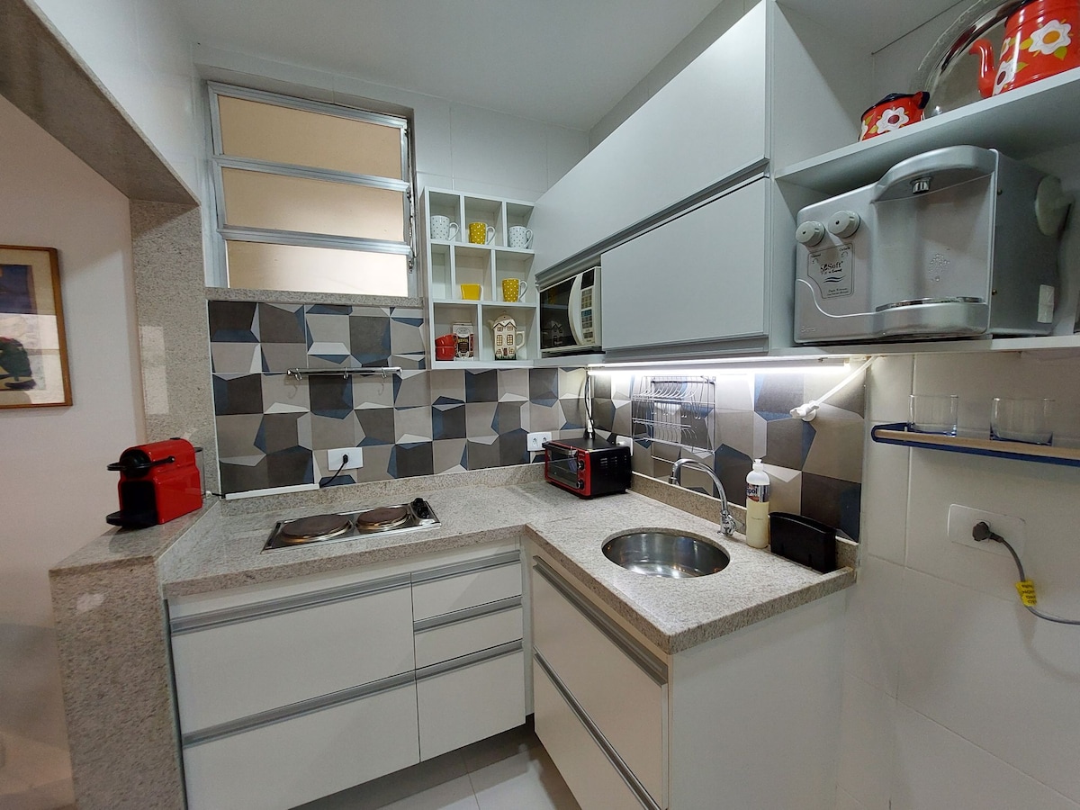 Ifulethi elihle, endaweni engcono kakhulu yase-Rio. Imizuzu engu-6 (400m) ukuya ebhishi lase-Copacabana ngezinyawo, imizuzu engu-10 (700n) ukuya ebhishi lase-Ipanema nase-Arpoador kanye no-150m ukusuka esiteshini. Ukuthula, okuphephile nokuhlala. Inakho konke okungu-500mbps, i-air conditioning ehlukanisiwe, isiteshi sokusebenzela, i-smart TV, ikhishi eligcwele, ivaliwe kanye negumbi lokugezela elihle. Jabulela ukuhamba ngezinyawo ama-copacabana nama-Ipanema bar, izitolo ezinkulu, izitolo nezindawo zokudlela nazo zonke izindawo ezikhangayo zezivakashi nezindawo ezizungeze idolobha elikhulu Idizayinwe ngumklami wase-Italy