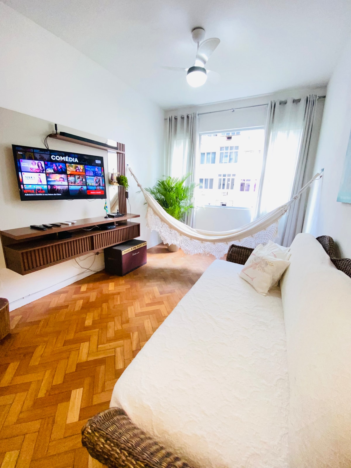 Kuhle futhi kuthokomele, ifulethi liphambi kwebhishi le-Copacabana, ephostini 6. Indawo yokungena idlula kugalari enokufinyelela ku-Av. I-Atlantica ne-Av. Nossa Senhora de Copacabana. Ifulethi linegumbi lokuphumula elivulekile negumbi lokulala, ikhishi negumbi lokugezela futhi line-Wifi, i-TV, abalandeli abangu-2, i-air conditioning, nokuningi. Indawo enhle! Eduze kukhona izimakethe, ekhemisi, izindawo zokudlela, ibhasi, isitimela esingaphansi komhlaba, Itaú ibhayisikili nokuningi. Uhamba ngezinyawo uvakashela i-Forte de Copacabana, e-Arpoador nase-Ipanema.
