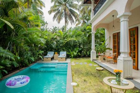 This luxurious Villa is nestled in the heart of Assagaon - Goa’s most culturally vibrant and green areas - & close to the Vagator (13 minutes) & Anjuna (17 minutes ) beaches. Located in a gated community, the Villa has three spacious bedrooms, a private pool, a steam room, & serviced by caretakers. The Villa offers a perfect blend of opulence and tranquility, & provides a perfect base for a serene retreat or to explore Goa’s vibrant culture or its beaches.