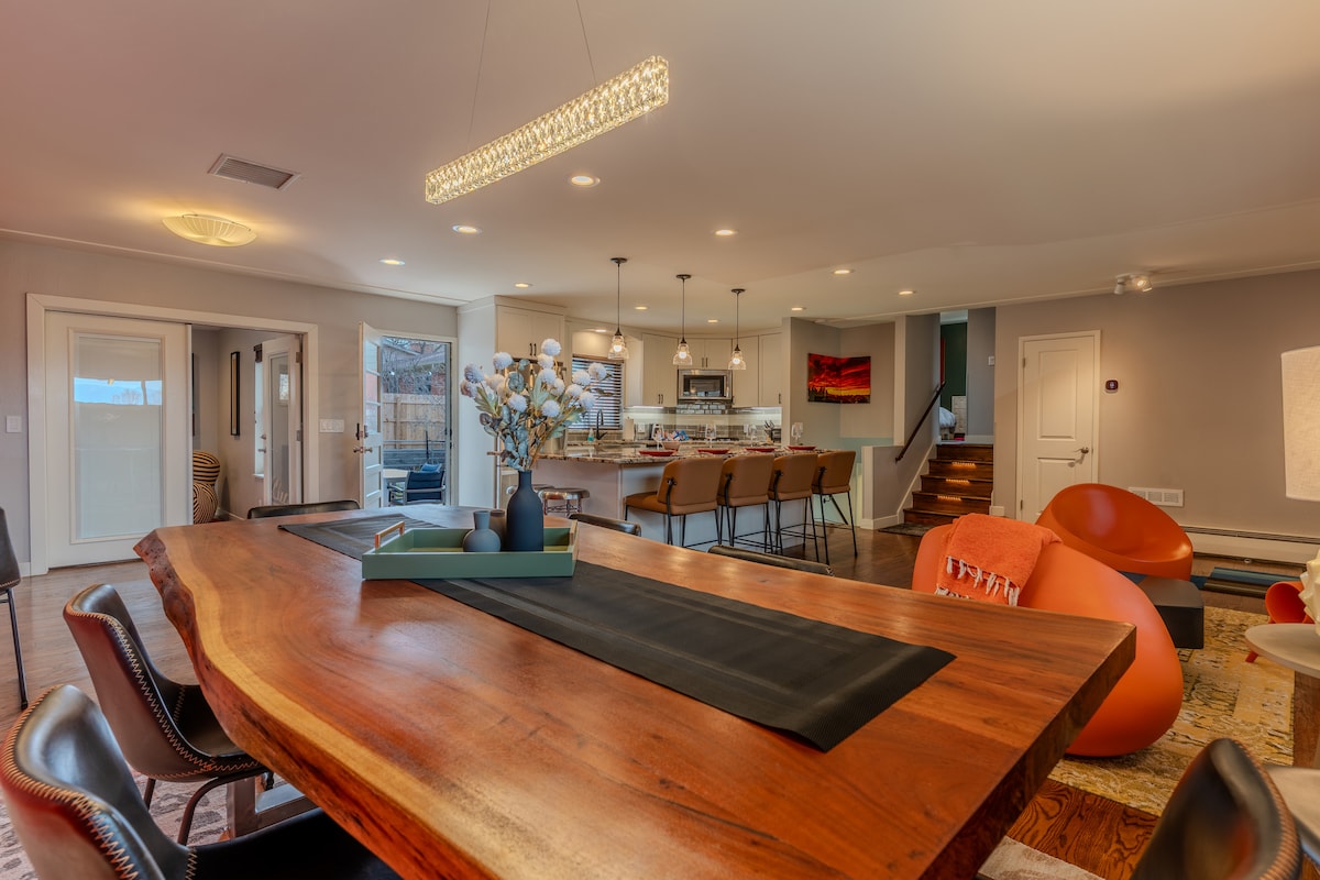 Lena yindlu yezivakashi ezimele endaweni yase-Crown Hill Park ebheke indlu yamahhashi eseduze. Jabulela ukuhlala okumnandi okunemizila yokuqwala izintaba neyamabhayisikili eduzane futhi kube lula kuzo zonke izindawo ezithandwayo. Leli kamelo lokulala elilodwa elikhulu linendawo yokuhlala yangaphandle enendawo yokubasa umlilo, i-tv, indawo yokuphumula, nobhavu wamanzi ashisayo. Ikhishi le-Gourmet lihlanganisa i-Wolf Appliances nama-quartz phezulu kuyo yonke indawo. Ikamelo lokulala elikhulu line-TV engu-65", umshini wokuwasha/wokomisa, nehhovisi elizimele.