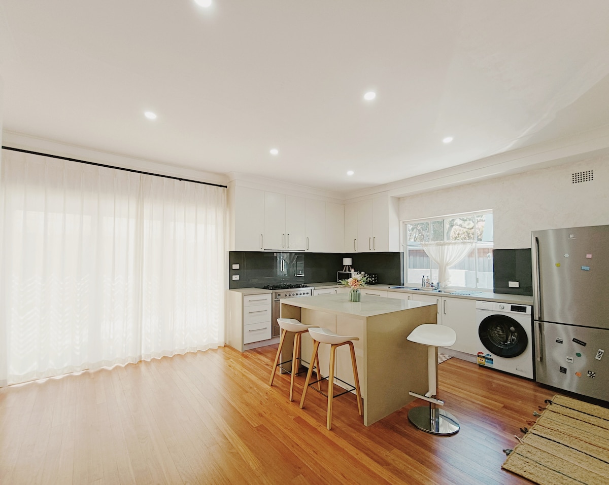 -I-air-conditioned & ethokomele 2 igumbi lokulala ingadi indlu yezivakashi esezindaweni ezithulile & ezifihlekile zendawo yangaphakathi-ntshonalanga Sydney (Concord). -Brand New & ivulekile indawo yokuhlala enefenisha ye-premium & enhle kakhulu. -10km ibanga ukuya e-Sydney CBD. -10mins ukushayela ku-Sydney Olympic Park. Ukuze ube nokuthula kwengqondo, kungcono ubambe i-Uber endaweni ye-Olympic Park lapho imicimbi emikhulu ivuliwe. -near izindawo zokudlela ezithandwayo e-Majors Bay Rd & North Strathfield Imizuzu engu-15 ukuya esiteshini sesitimela ngezinyawo. -Ukupaka okuningi esitaladini.