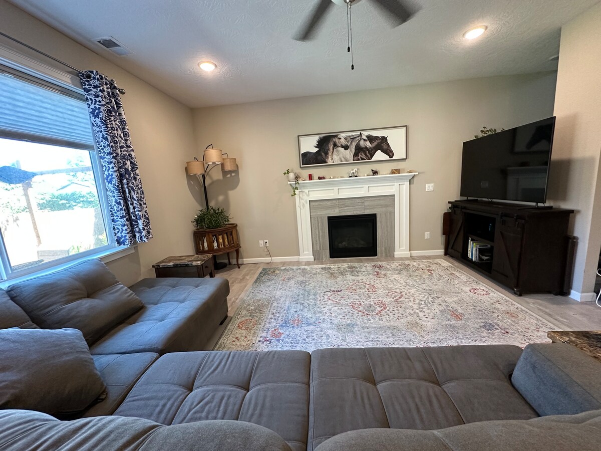 Indlu eyakhiwe ngamapulangwe encane yothando elungele abantu abashadile ukuba bahambe kukho konke! Woza uphumule futhi ujabulele ubhavu wakho wamanzi ashisayo emphemeni ophrayivethi. Usayizi owodwa we-queen, umbhede we-memory foam, ukushisa/i-air conditioning, i-fireplace yasentabeni yomlilo, umgodi womlilo ongaphandle oshonile, i-inthanethi yejubane eliphezulu, isikrini esikhulu esingu-8'sokulinganisa amabhayisikobho esinesistimu yomsindo ozungezile, nendawo yokupaka yesibili ehlanganisiwe enesiteshi sokuwasha izithuthuthu amanye nje amasevisi amahle esinawo.