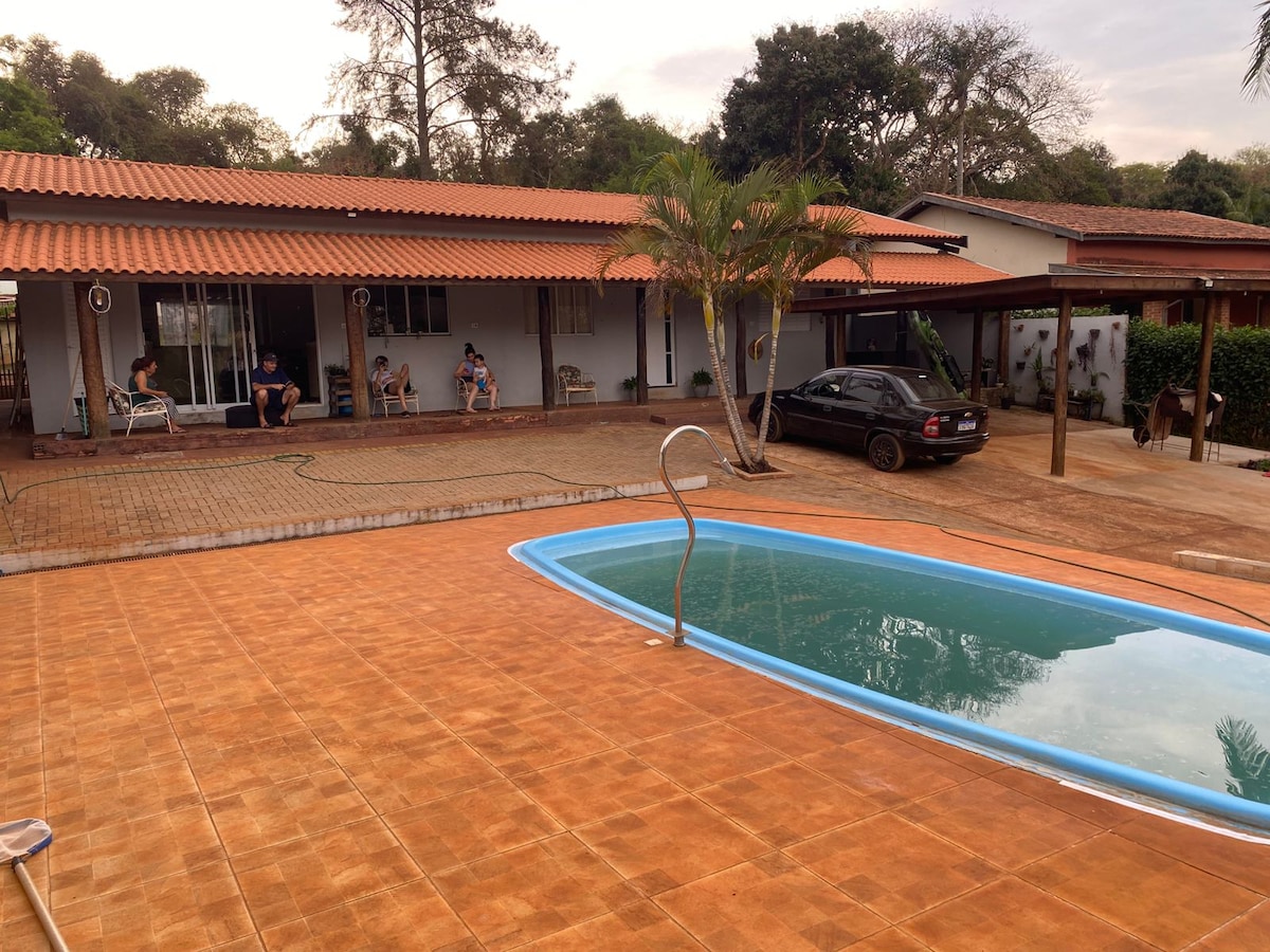 Casa de Campo Ideal para Amigos e Familiares com pets Toda cercada c/ muro/alambrado. Somos flexíveis com horario check-in/check-out. 3 suítes Banheiro adicional para a piscina Churrasqueira e forno de pizza Casa equipada com louças, talheres, copos, pratos, etc. Fornecemos jogos de cama (não fornecemos toalhas de banho) Wi-Fi fibra ótica de 500megas. Bela vista para a represa Jurumirim. Cama para 7 pessoas, com possibilidade de disponibilizar um colchão adicional para uma oitava pessoa. Smartv