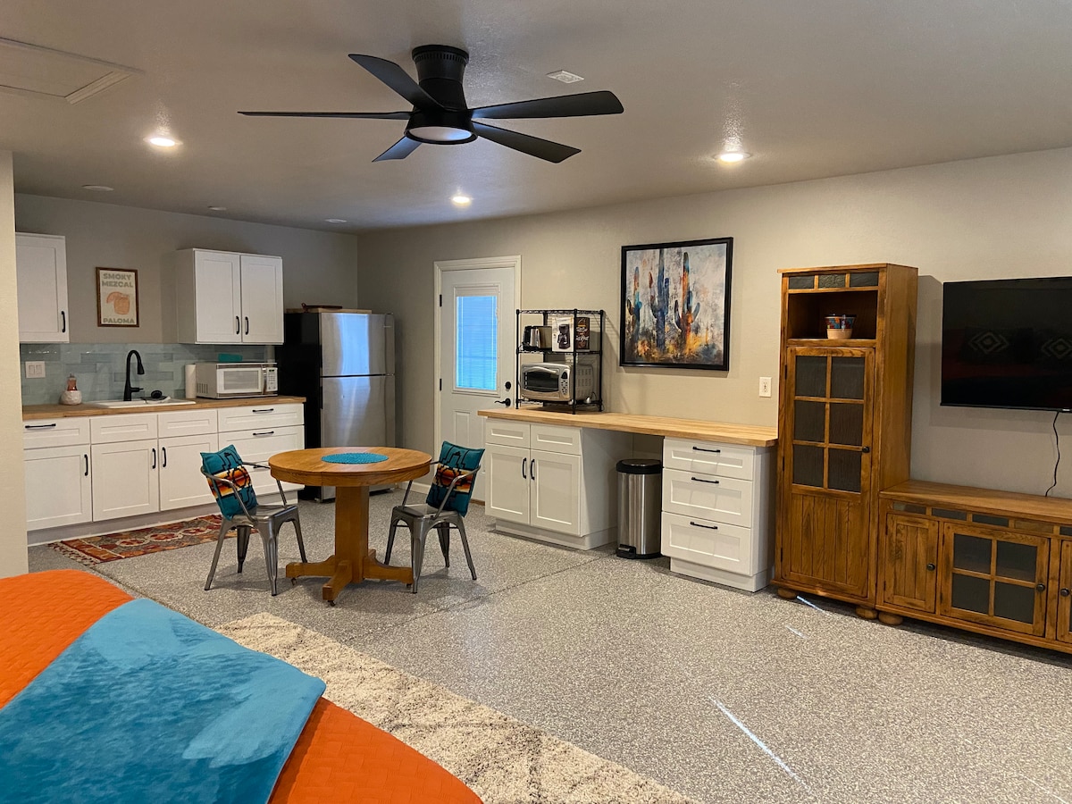 Zithokomele kule studio elungisiwe endlini enhle engamahektare angu-17 e-West Tucson Foothills. Ingxenye ye-5-plex endala enezinye izindlu ezingu-8, le yunithi enhle inombhede omkhulu, ukufudumeza okuvamile (kugcinwe cishe ngo-70° F ebusika), ukuhlukaniswa okuncane kwe-AC/heater, ikhishi elincane eline-microwave nesitofu/uhhavini, i-Roku TV, ne-WiFi esheshayo (~400 Mbps). ~350 sq ft yokunethezeka ngomhlobiso onetimu yasebhishi. Ihlanzeke kakhulu, inezindawo eziningi ezingasebhishi-kodwa alukho ulwandle. :) AZ TPT Lic 21337578