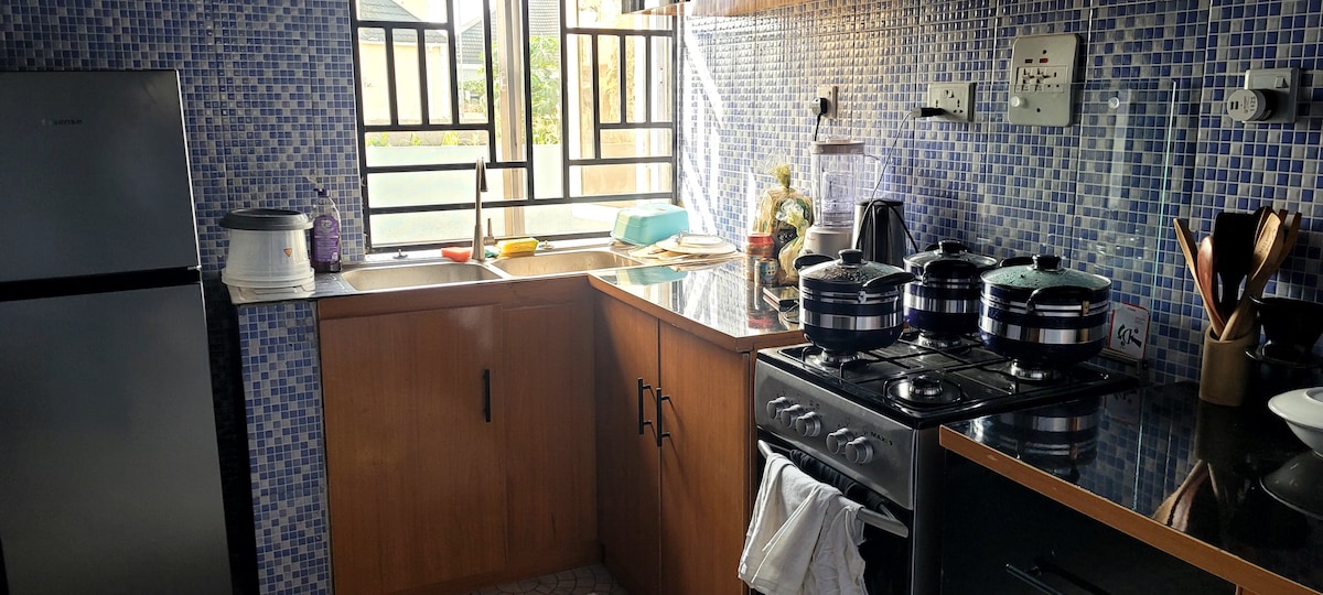 Letha wonke umndeni kule ndawo enhle enendawo enkulu yokuzijabulisa. ● Ikhaya elikude nasekhaya. Ukukhanya ● kwamahora angu-24 ngesipele selanga. Indawo ● ezungeze idolobha elikhulu enobungane. ● Isibani sokuvikeleka samahora angu-24 esine-CCTV. ● I-DSTV yamahora angu-24. ● Izimoto eziqashisayo uma zicelwa. ● Ukuthatha nokwehla kwesitobhu sebhasi. ● Isevisi ye-inthanethi engu-24/7. 9. Iziphuzo zokwamukela zamahhala 10. Isaphulelo somuntu oxoxelwe nge-Airbnb 11. Ukuvikeleka okuphezulu 12. Indawo ethokomele 13. Indawo ehlanzekile nenhlanzeko