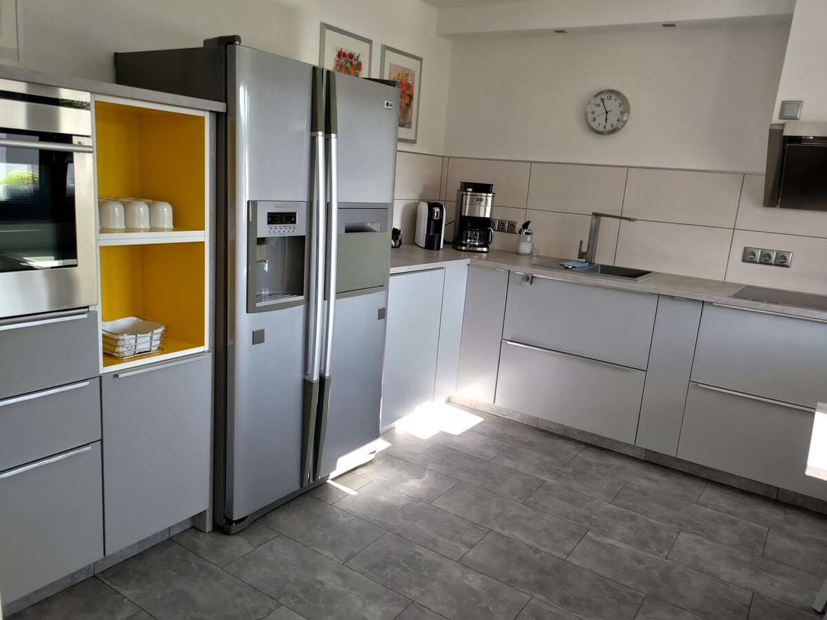 Iholide lezwe eliphumuzayo e-Siebengebirge noma ukuhlala kwebhizinisi okumnandi efulethini lethu elihle, elikhanyayo le-studio (cishe 50 m²) endaweni ethulile enendawo yokungena ehlukile nokuhlala kwangaphandle. Ifulethi itholakala endaweni yezintaba yase-Königswinter ngasezinyaweni ze-Ölberg futhi iyindawo ephelele yokuqala yokuqwala izintaba. Kulungele umndeni omncane, abagibeli bezintaba noma abagibeli bamabhayisikili. Kunezinhlobonhlobo zohambo oluya endaweni ezungezile noma endaweni ezungezile.